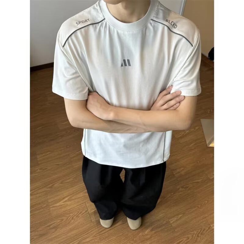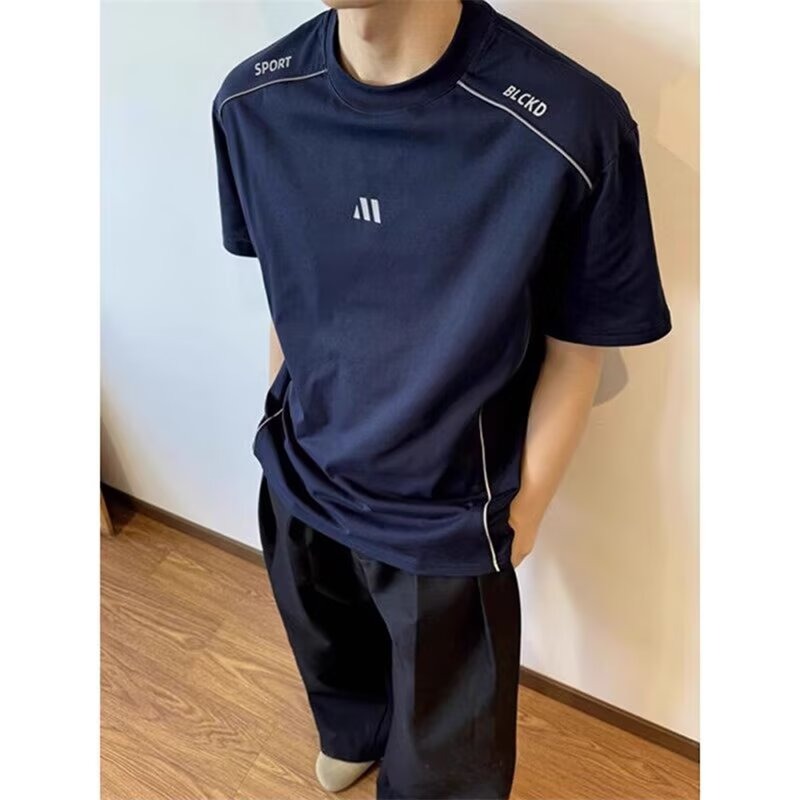 运动T恤男夏季健身运动户外凉感速干短袖解构拼接插肩五分袖t恤衫