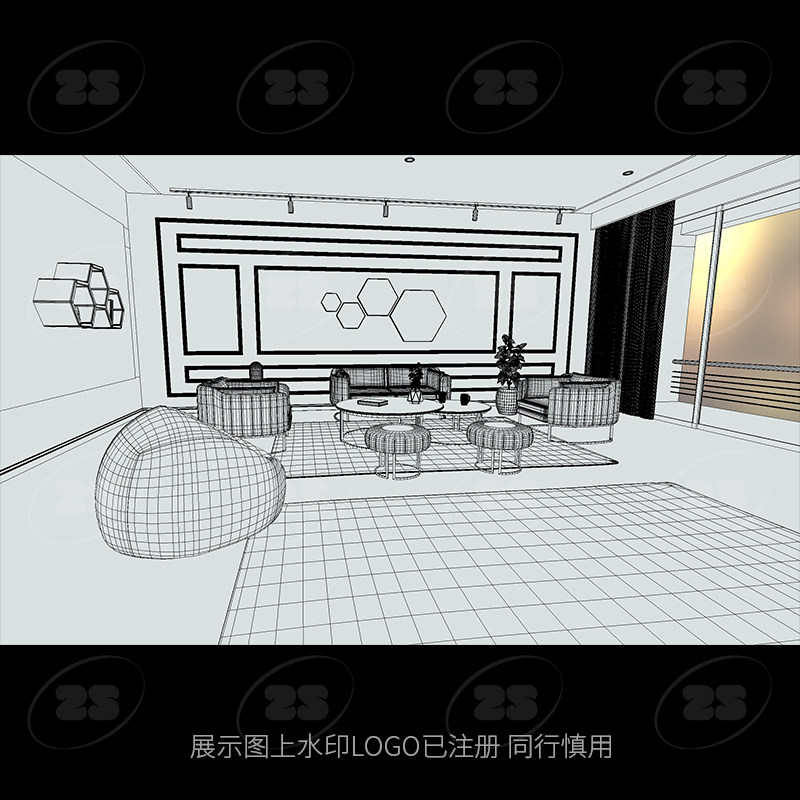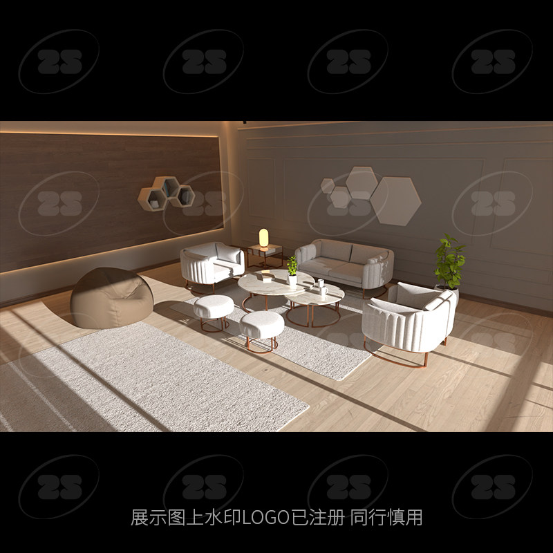 blender现代客厅沙发场景渲染房间阳光模型建模素材茶几凳子698