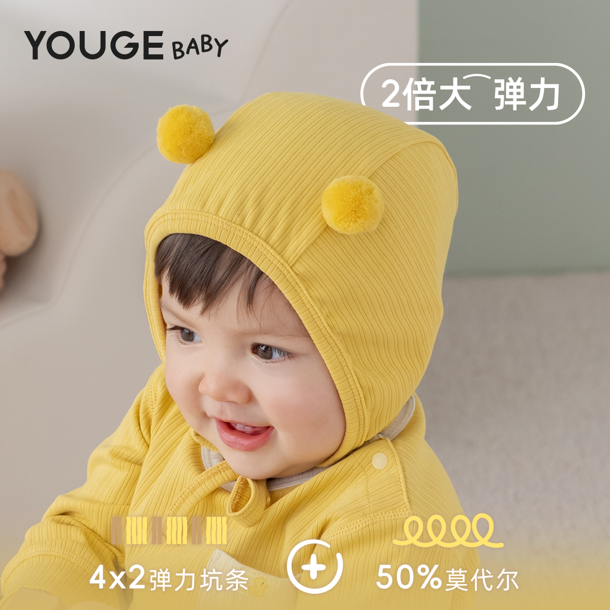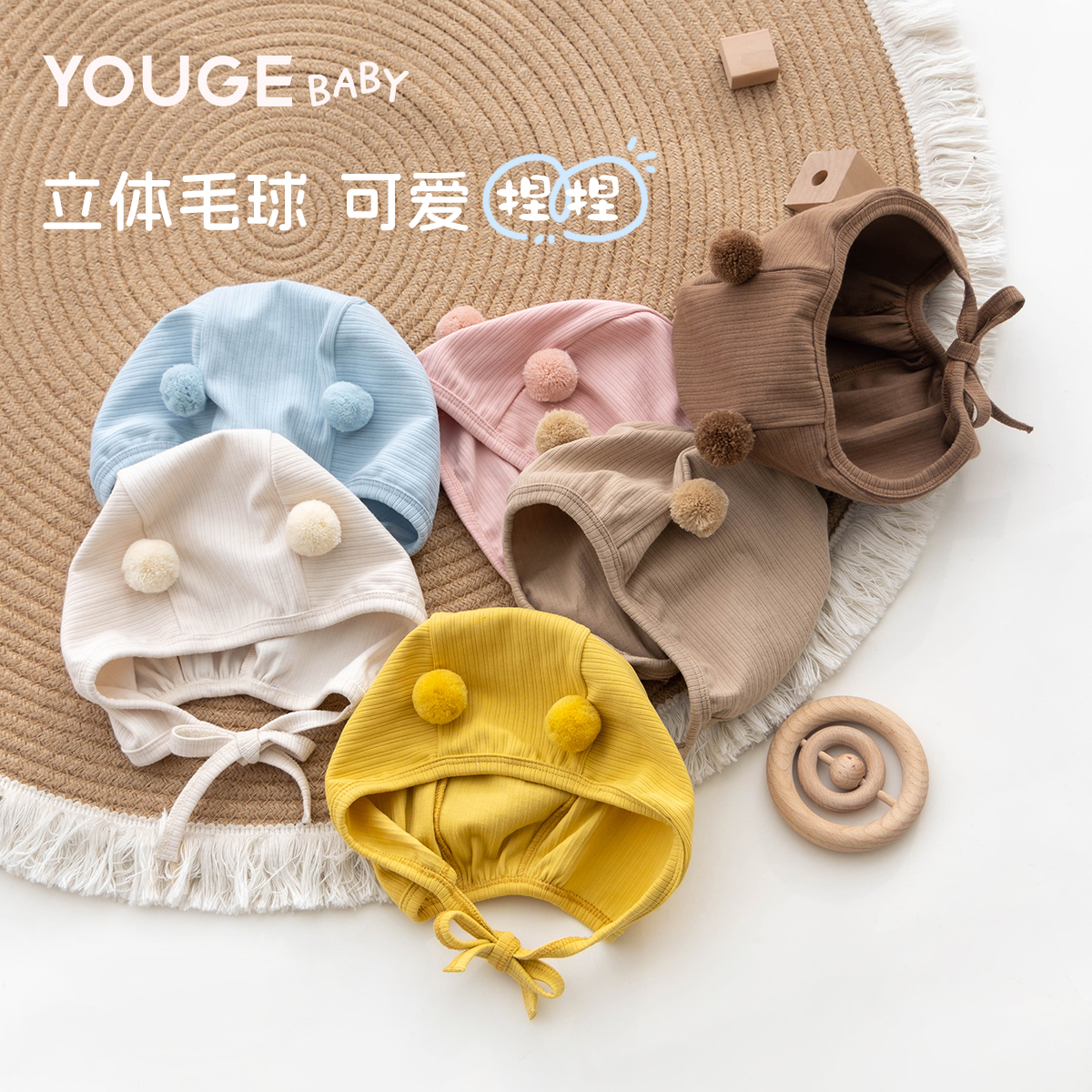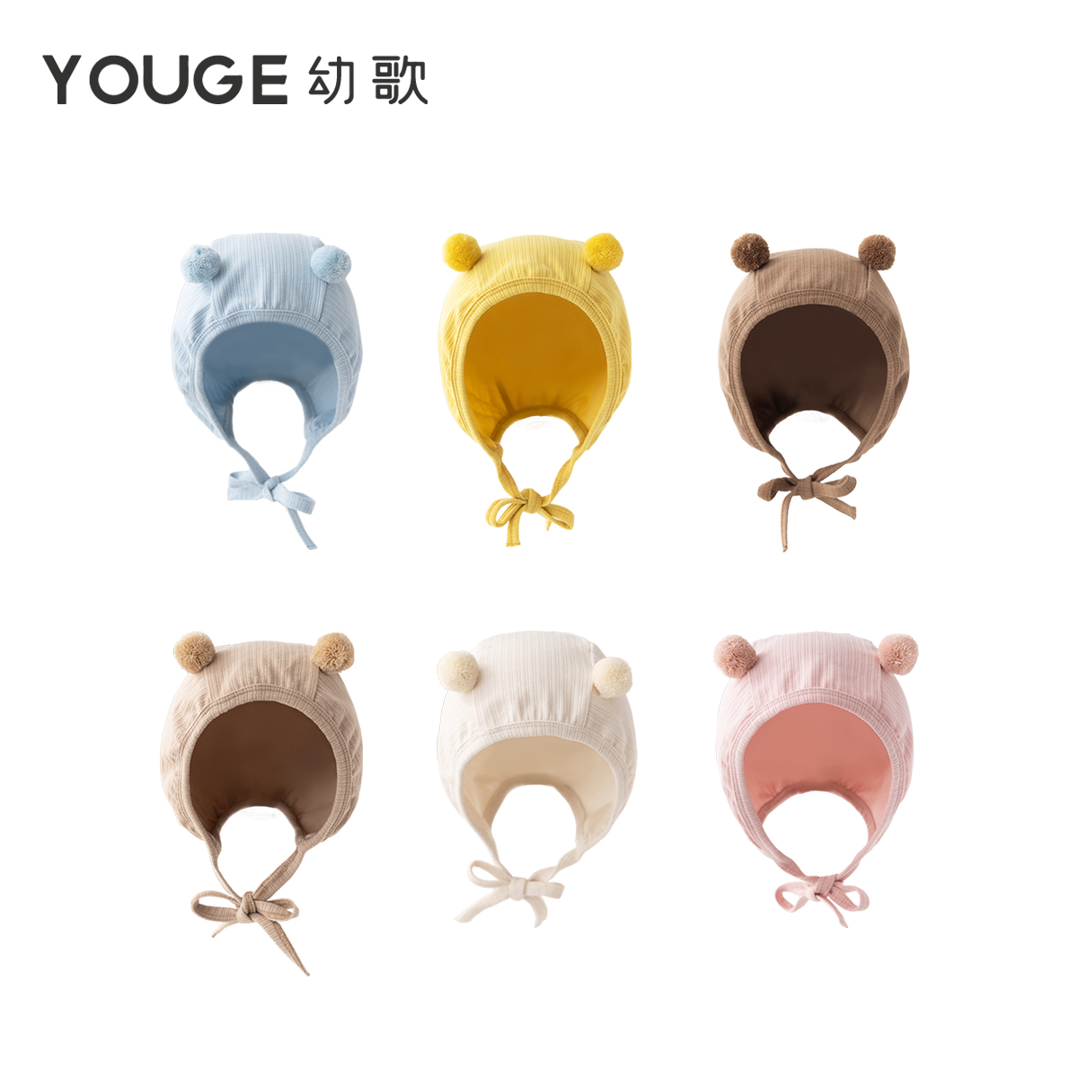 【Q条棉】幼歌婴幼儿春季新品可爱立体毛球弹力软糯系带包头帽子
