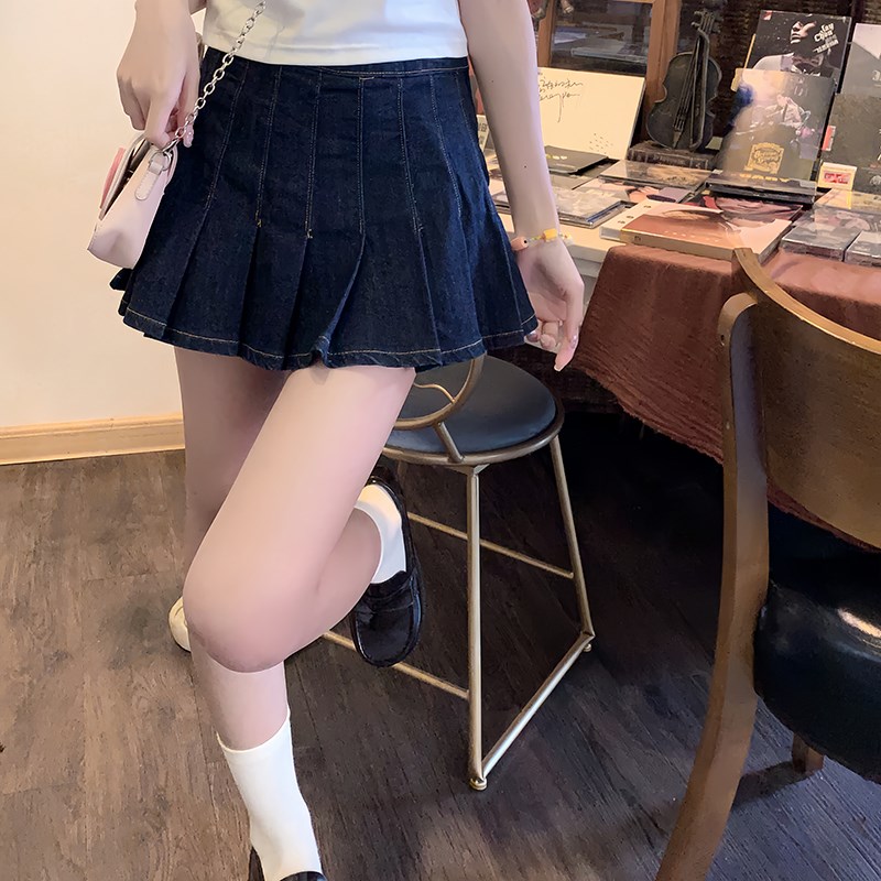 【翻斗花园日记】美式复古牛仔半身裙女新款高腰辣妹A字百褶短裙