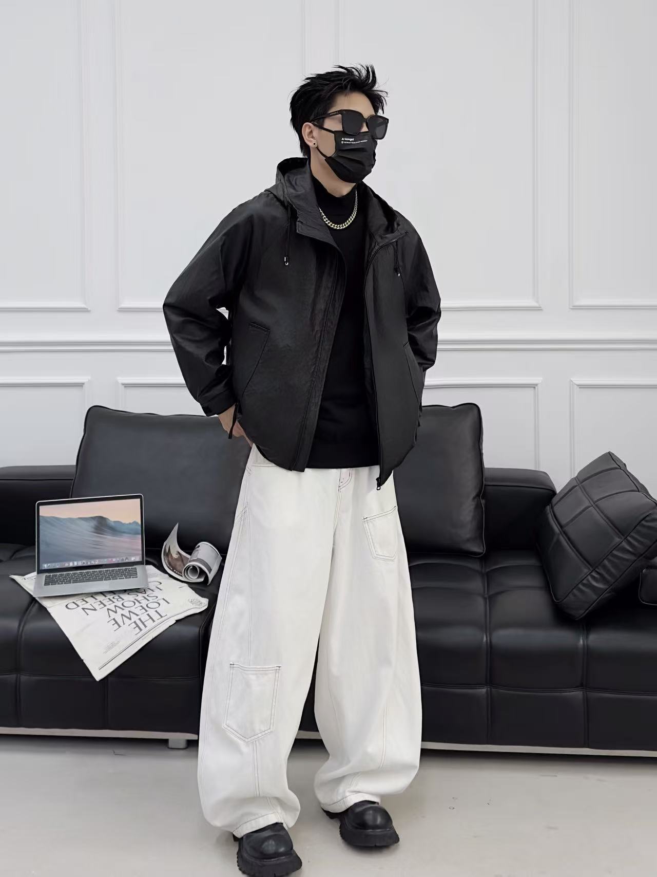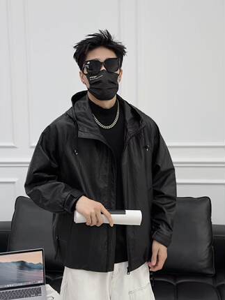 潮牌秋冬季休闲男户外山系工装冲锋衣二棉服百搭宽松上衣连帽外套