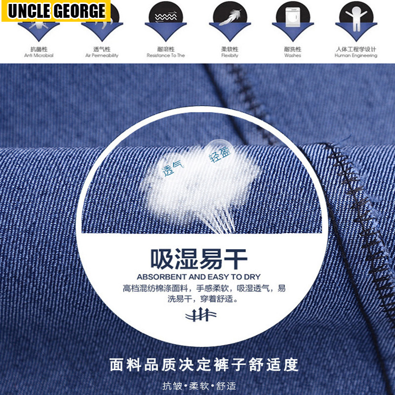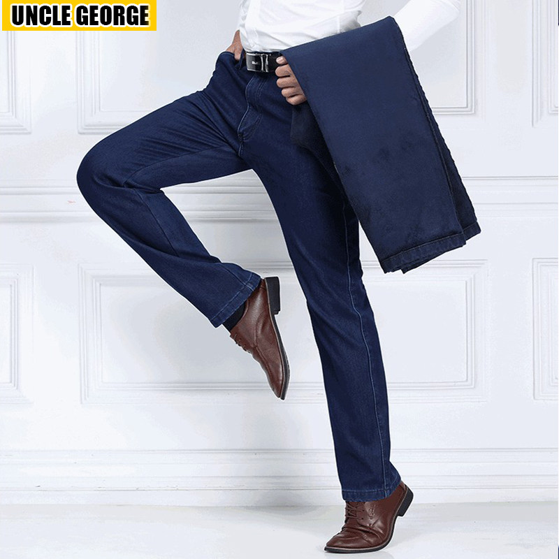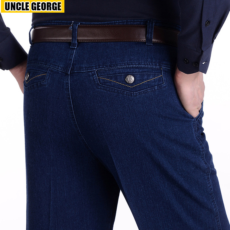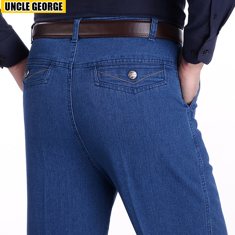 中老年弹力牛仔裤男士夏季薄款直筒休闲男裤高腰宽松爸爸工装裤子