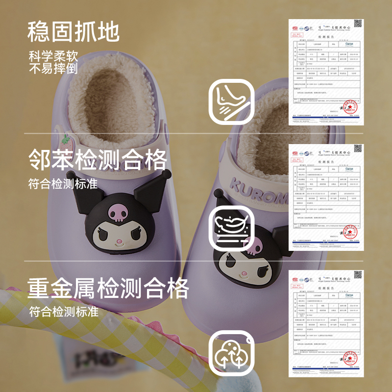 库洛米女童棉拖鞋防水冬季宝宝女孩公主室内家居儿童毛拖鞋中大童