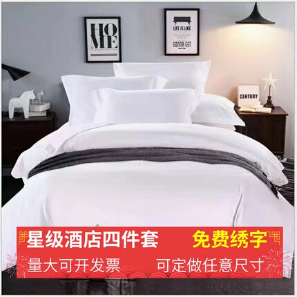 酒店四件套c 纯白床单被套全棉60支宾馆民宿床上用品布草可绣字