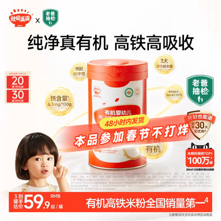 秋田满满有机高铁米粉婴幼儿营养米粉米糊婴儿1阶段 宝宝辅食6月+