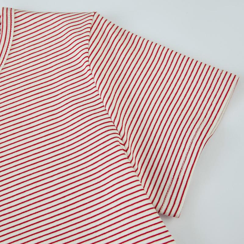 精梳棉细条纹短袖T恤女修身夏季新款横条纹纯棉圆领上衣休闲百搭
