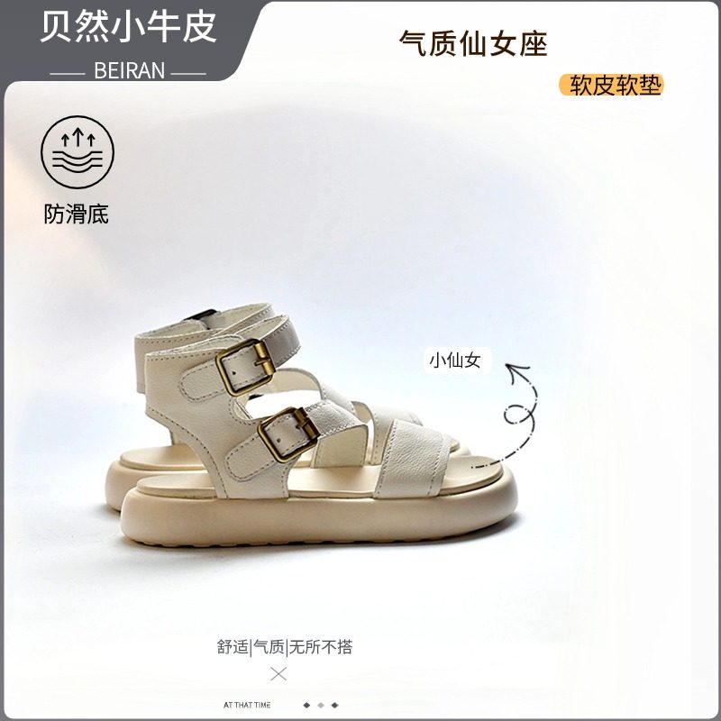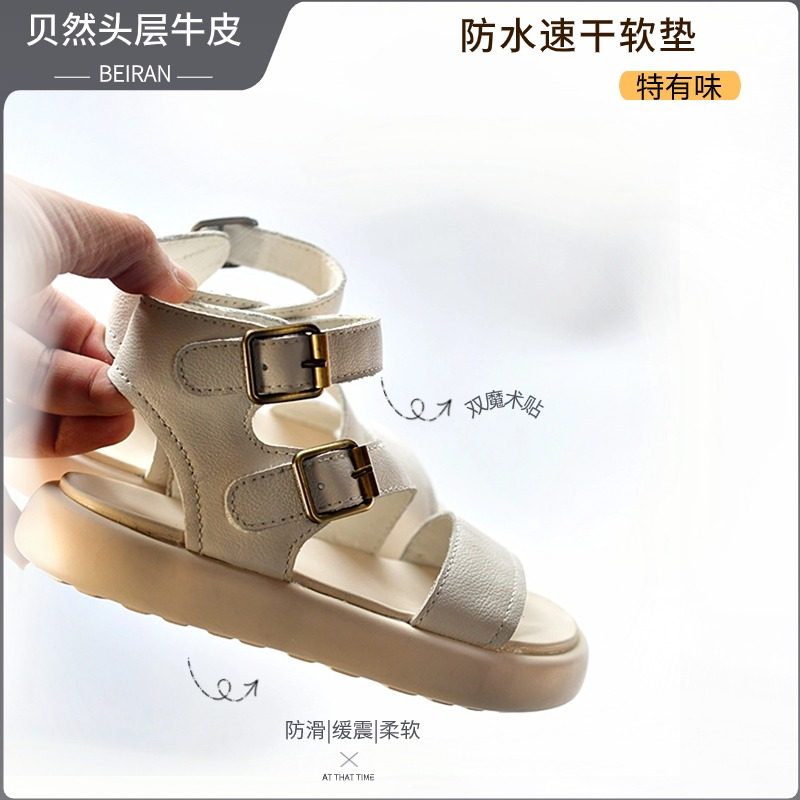 贝然儿童凉鞋女童真皮罗马休闲夏季软底防滑沙滩鞋公主女宝孩鞋子