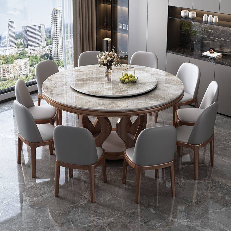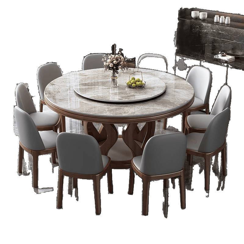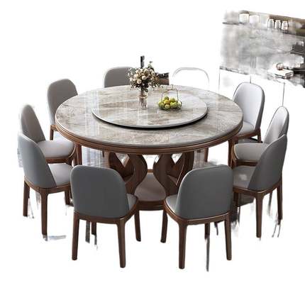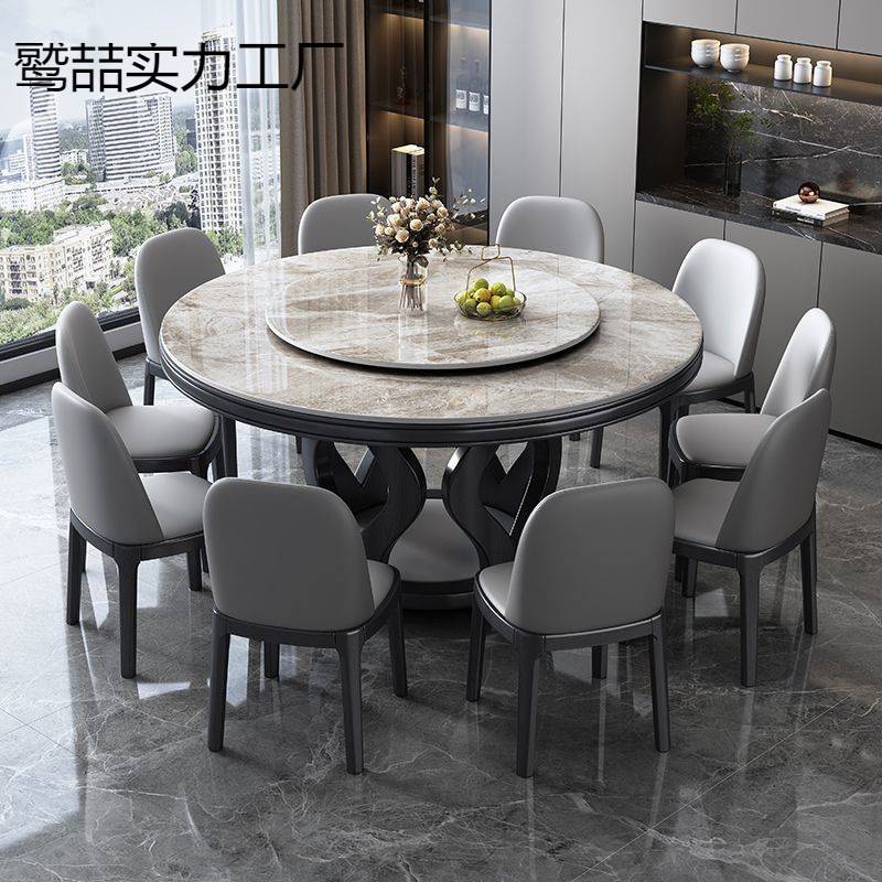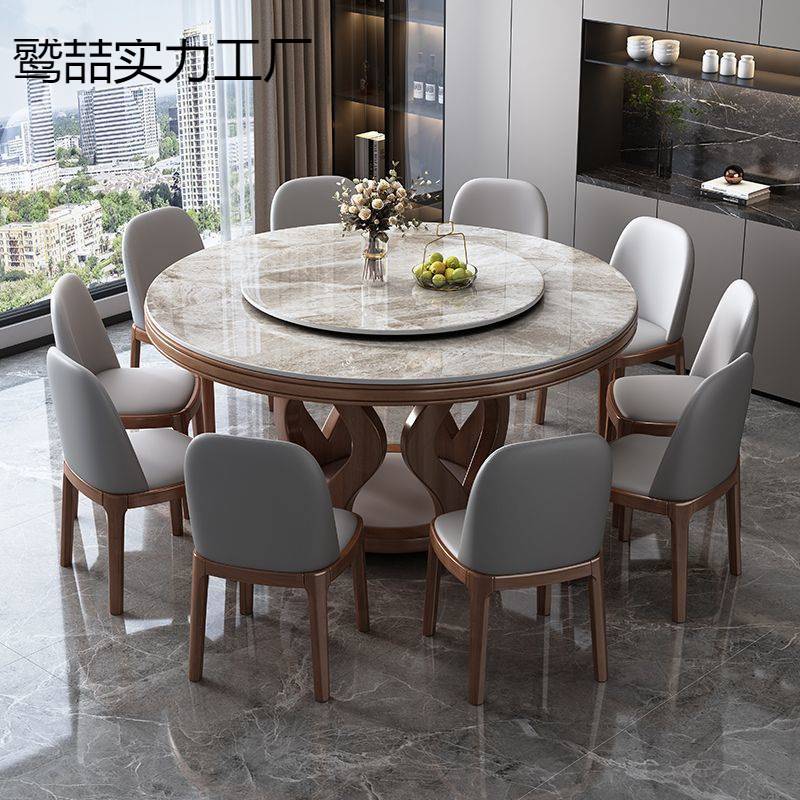 高端岩板圆桌饭桌酒店饭店家用小户型实木圆形带电磁炉餐桌椅组合
