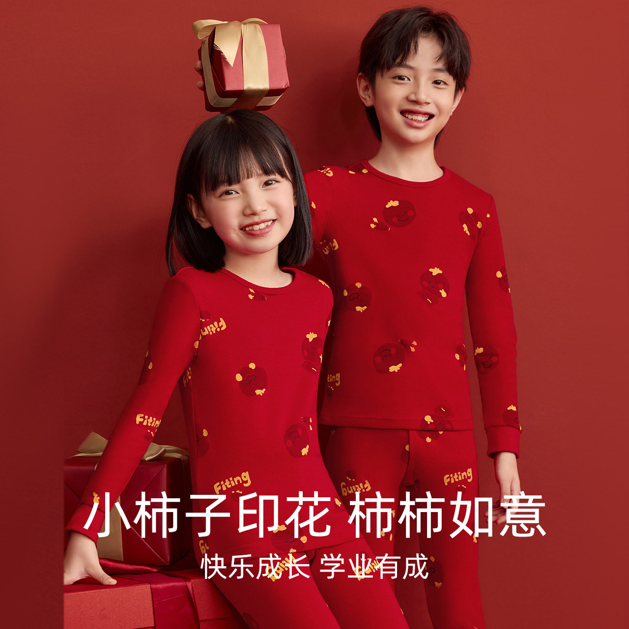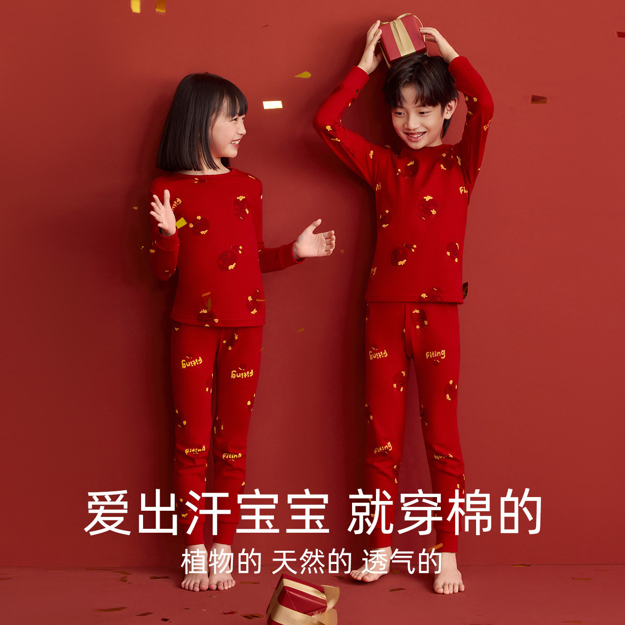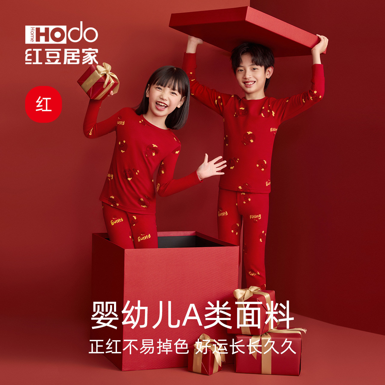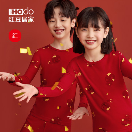 红豆红儿童红色秋衣秋裤套装本命年保暖内衣纯棉秋冬男女大童12岁
