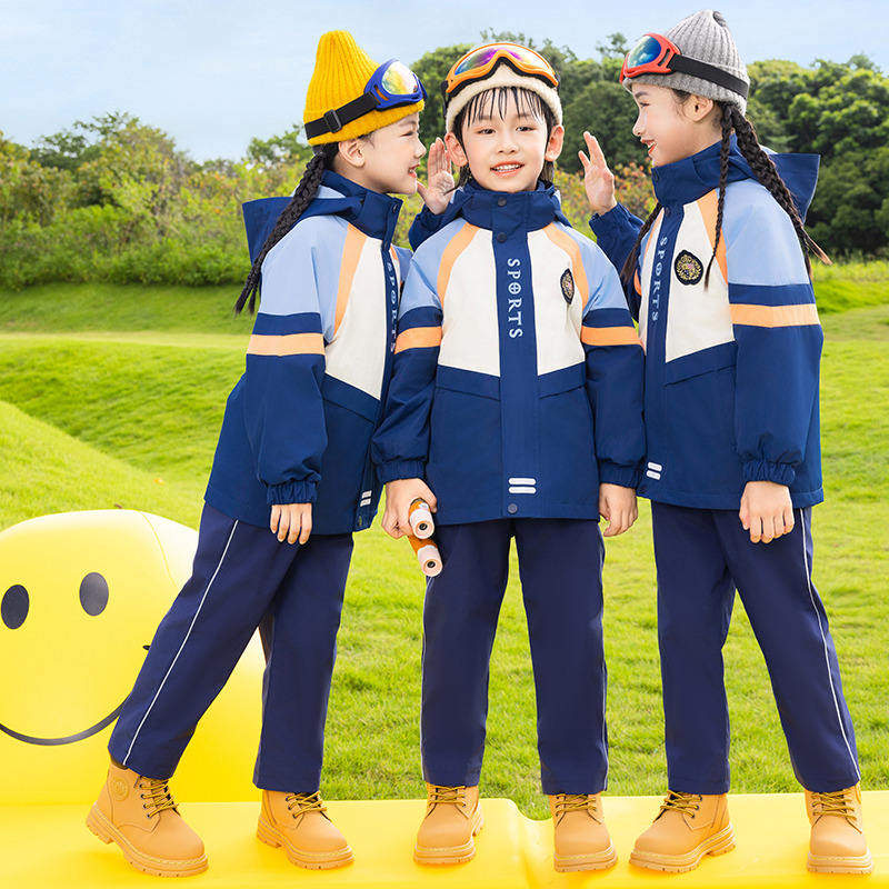新款中小学生校服套装秋加绒冲可拆卸冲锋衣幼儿园园服三件套冬装