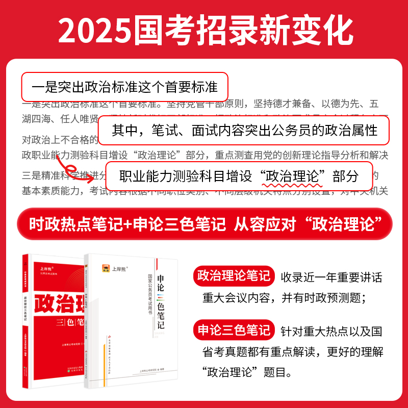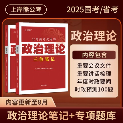 上岸熊政治理论三色笔记公务员考试2025考公资料2026省考国考时事政治题库公考考研行测申论多省联考事业单位事业编考编教资遴选
