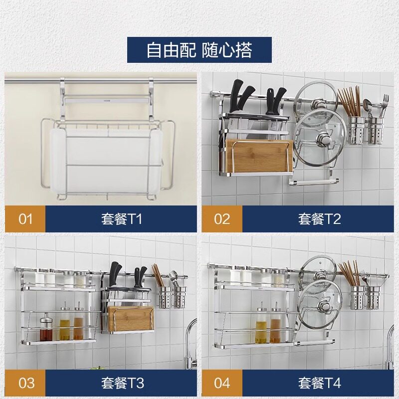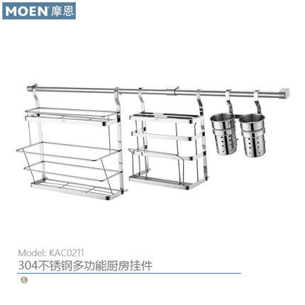 摩恩304不锈钢厨房五金挂件置物架调味架碗筷刀架家用锅盖架