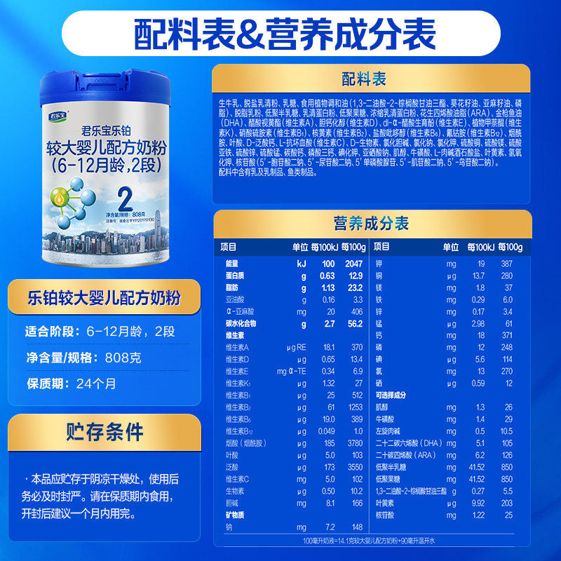 君乐宝乐铂2段较大幼儿配方奶粉