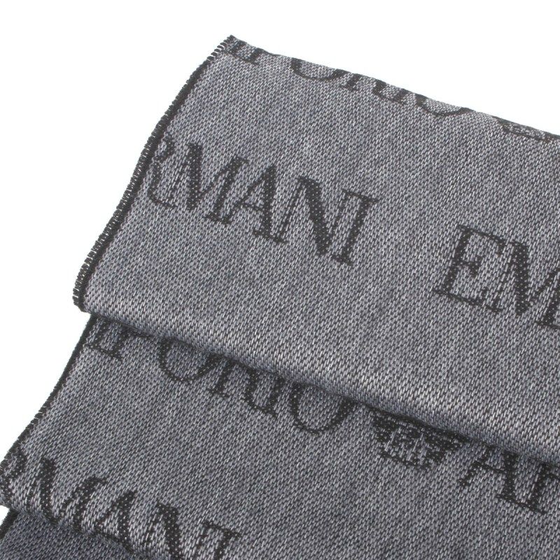 【新年礼物】Armani/阿玛尼 经典字母logo围脖羊毛男流苏保暖围巾