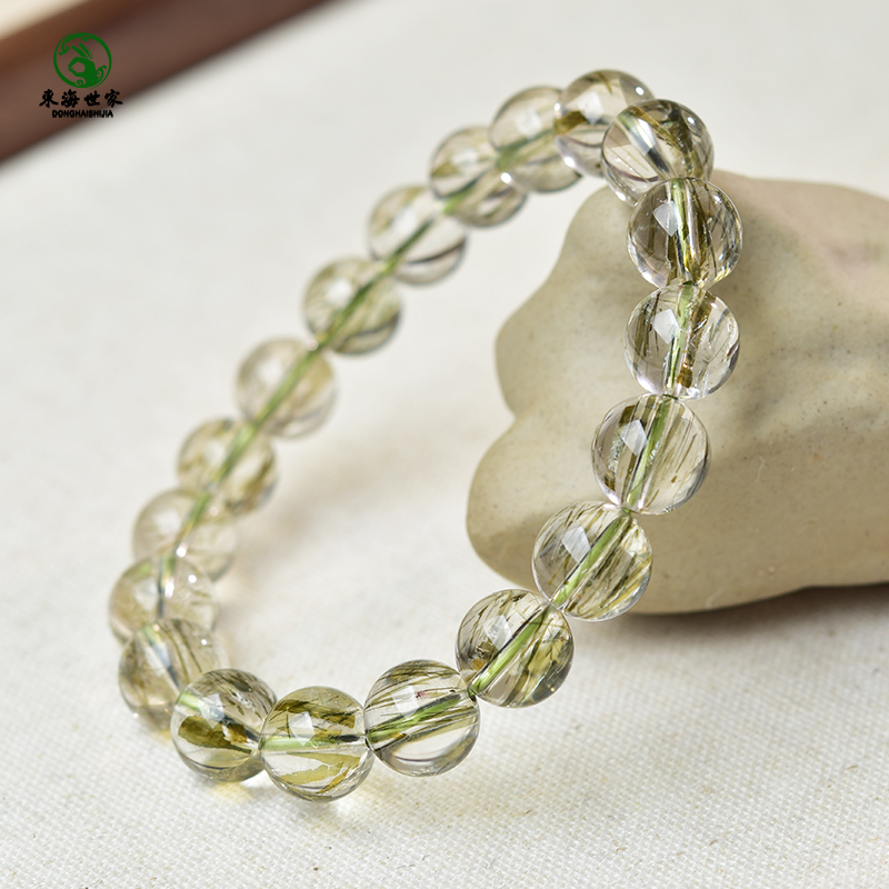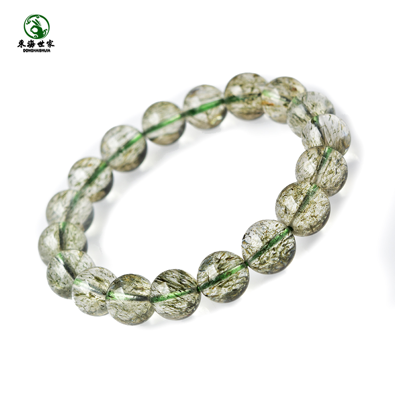 绿发晶手链女男东海水晶玛瑙翡翠玉石散珠子幽灵猫眼宝石兔毛手串