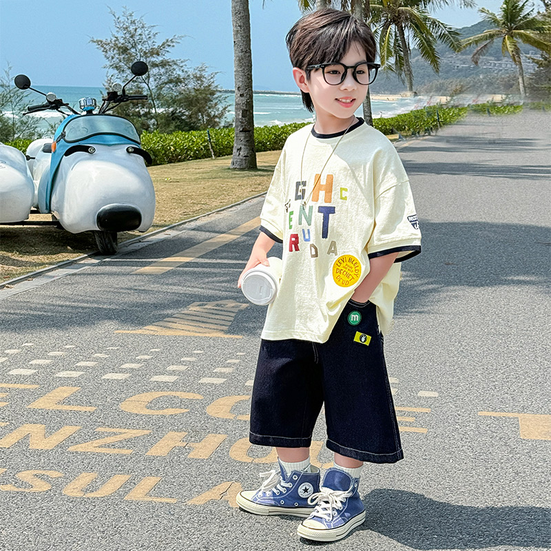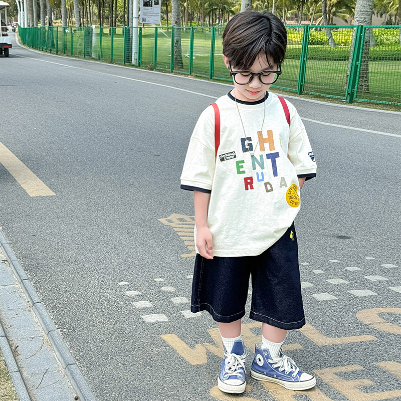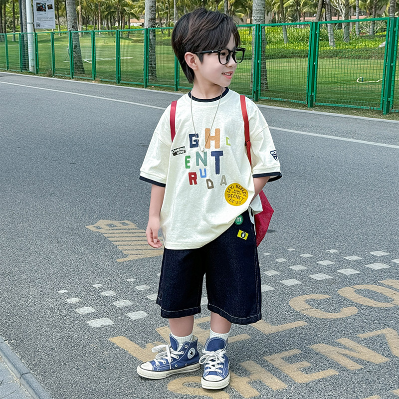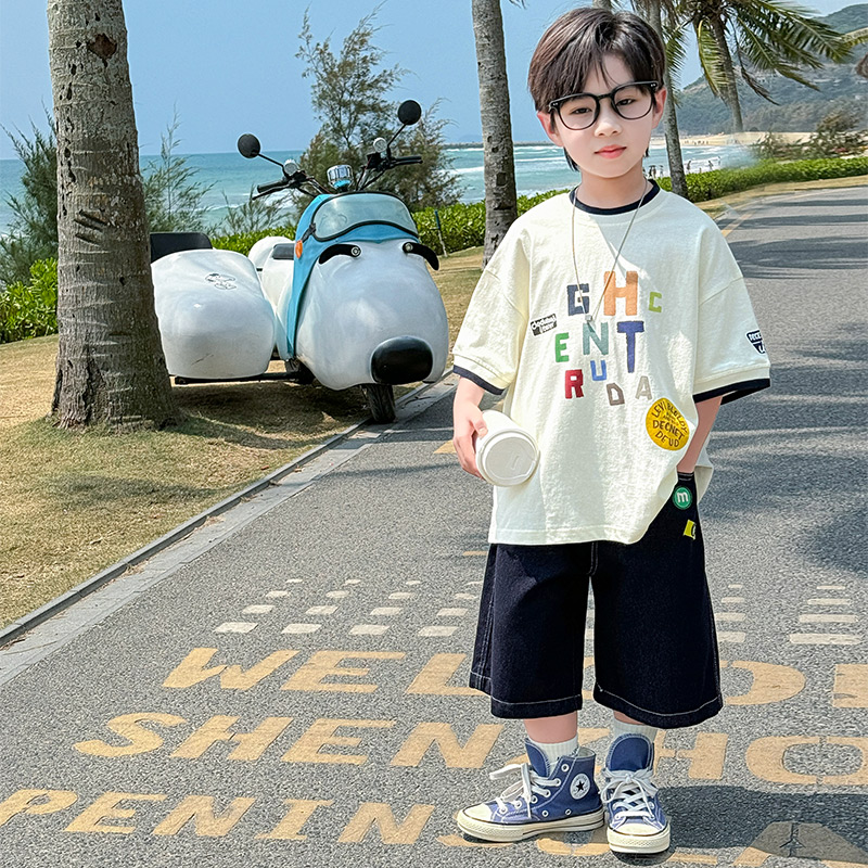 男童短袖T恤2025夏装新款儿童中大童纯棉上衣男孩休闲潮