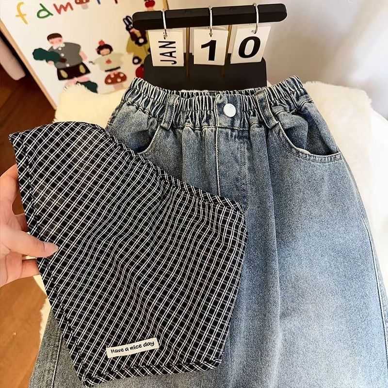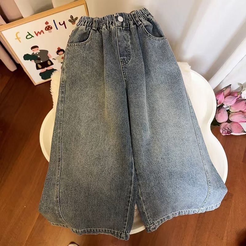 女童春秋装新品直筒牛仔裤儿童韩版阔腿裤网红休闲牛仔裤宽松