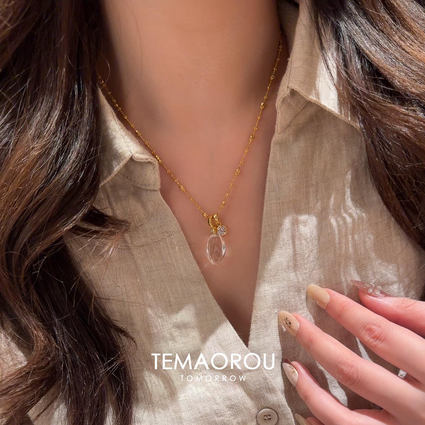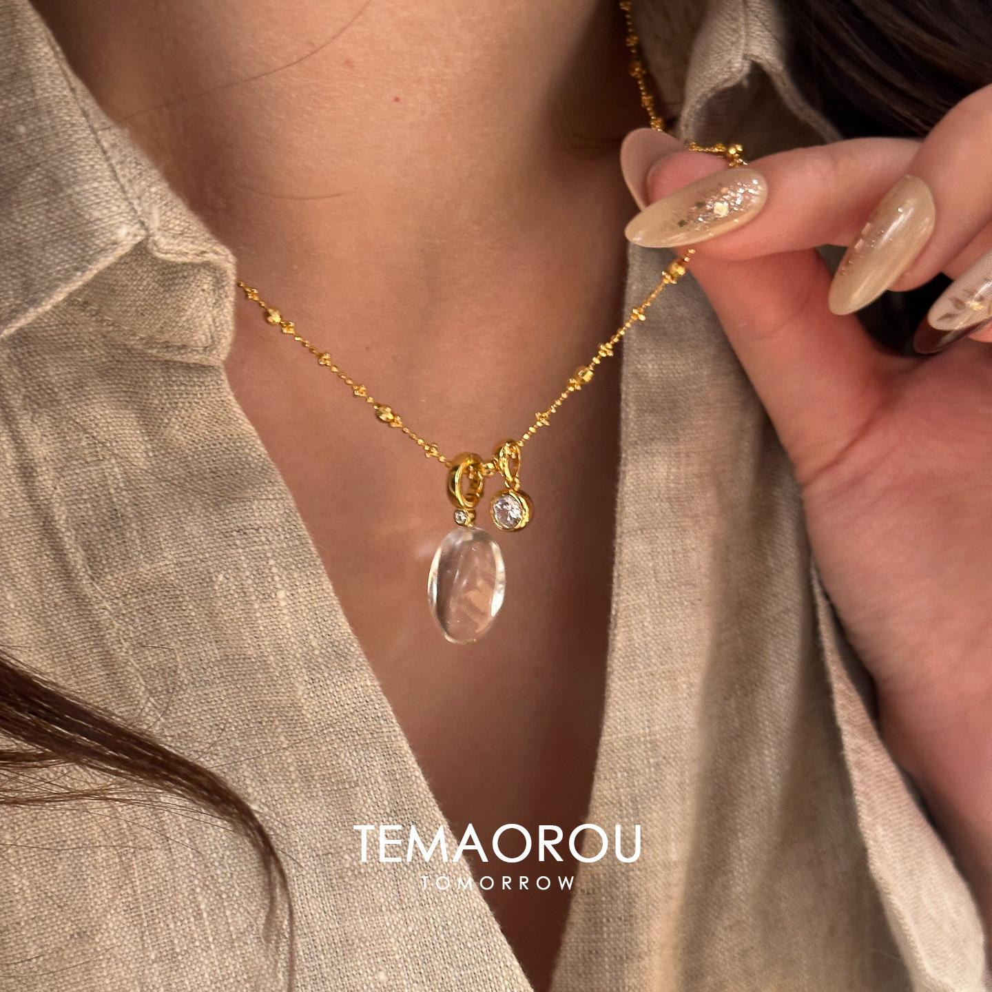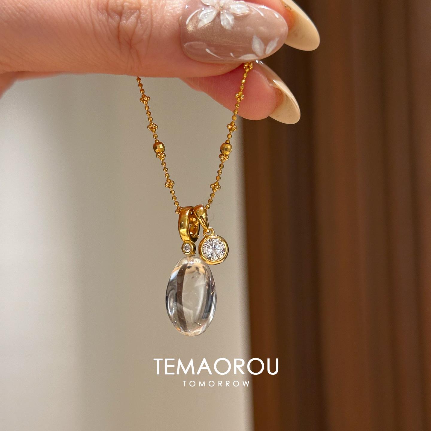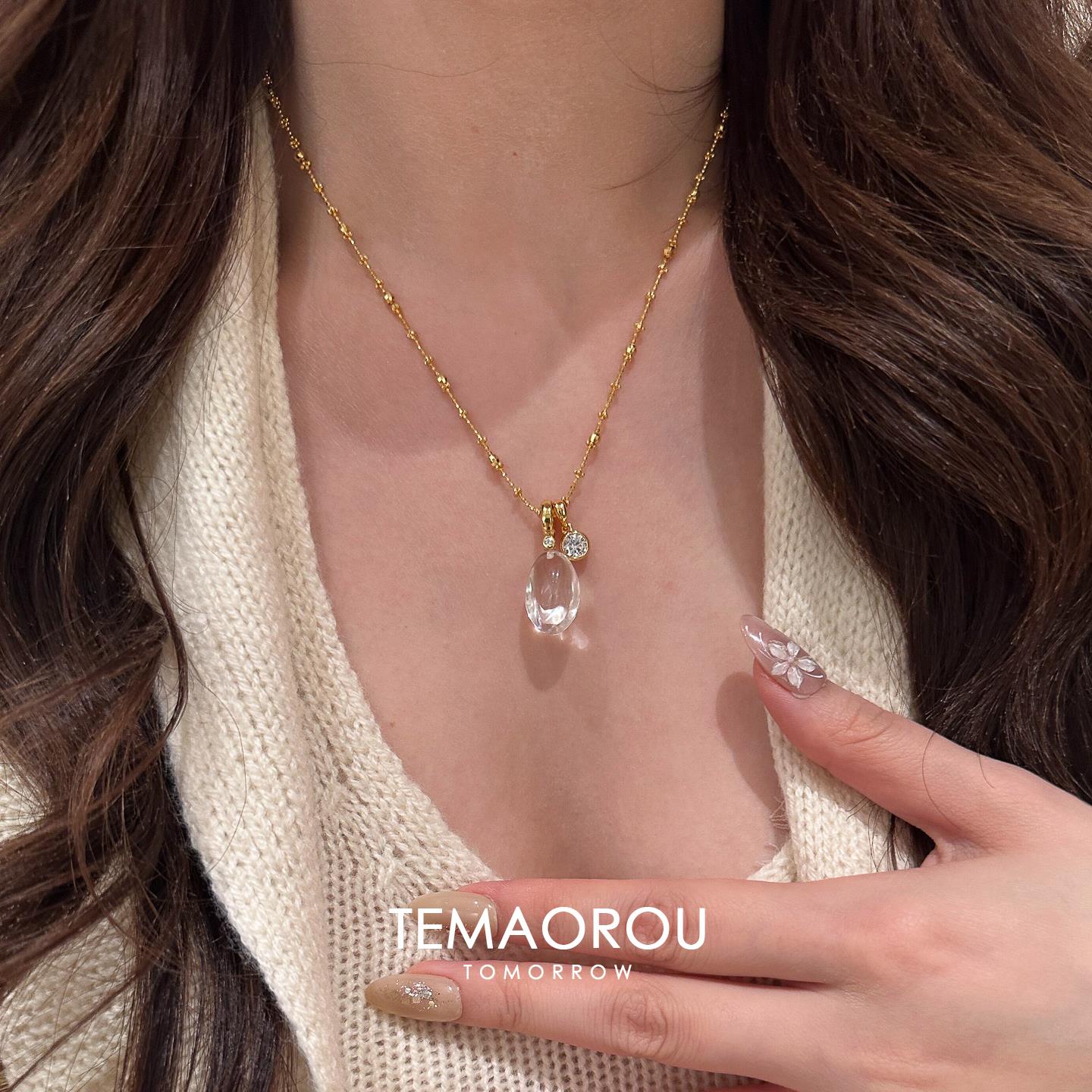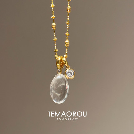 “小灯泡”椭圆白水晶泡泡闪钻金项链高级感轻奢贵气毛衣链配饰