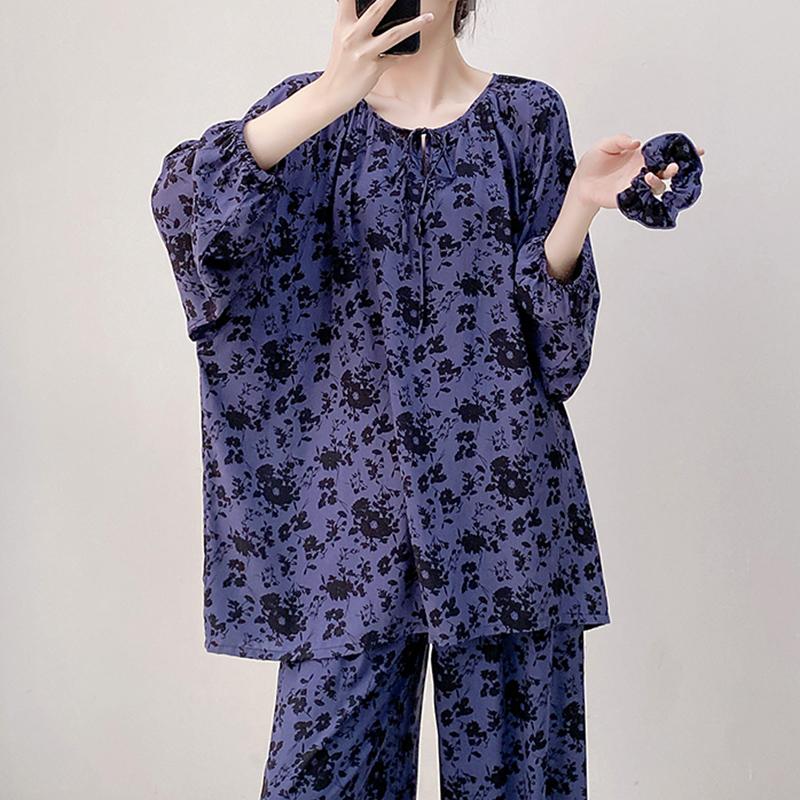 棉绸睡衣女春秋季新中式国风长袖套装宽松可穿200斤大码家居服夏