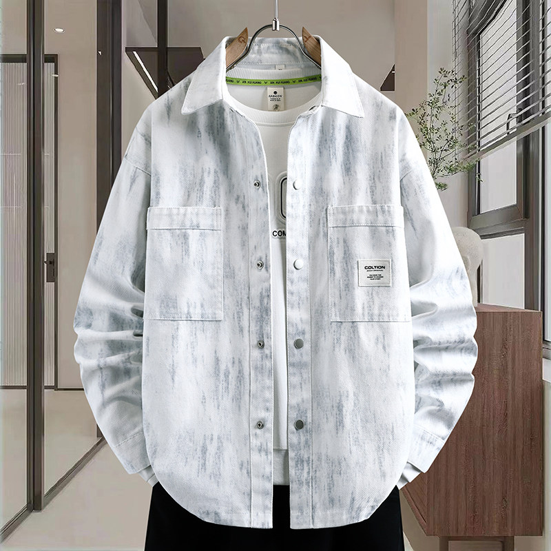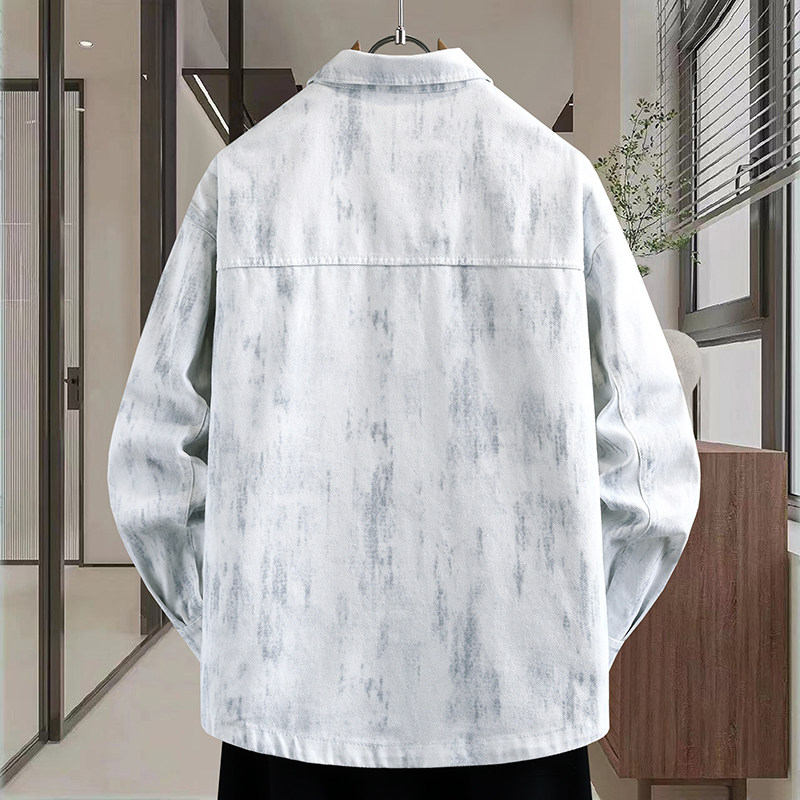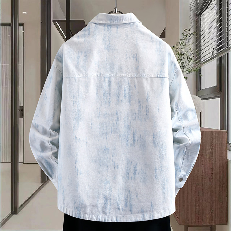 春秋季2026韩版学生牛仔外套字母贴标设计扎染潮流男生百搭夹克