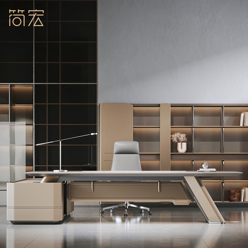 总裁办公桌简约现代高档董事长老板大班台轻奢烤漆总经理桌椅组合
