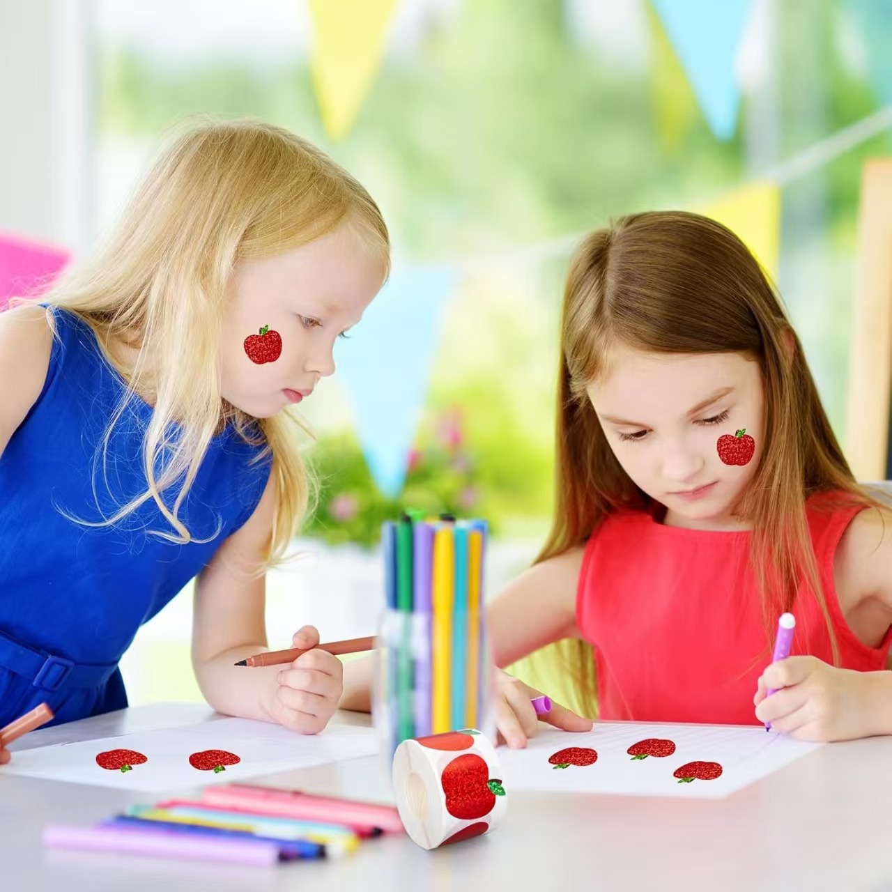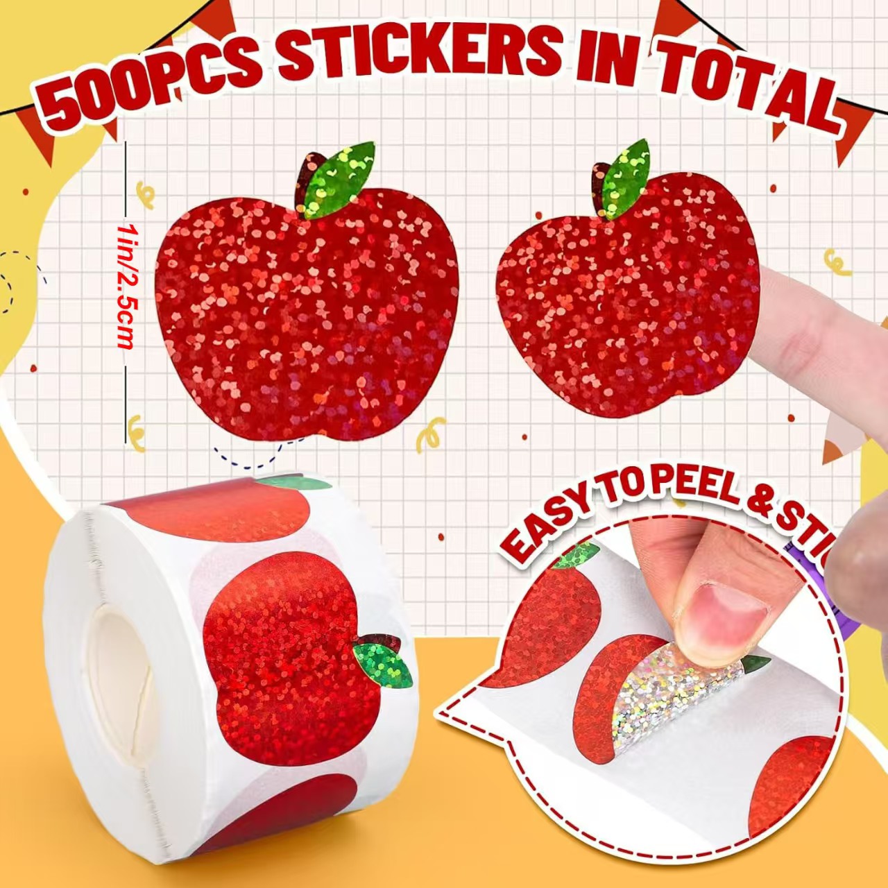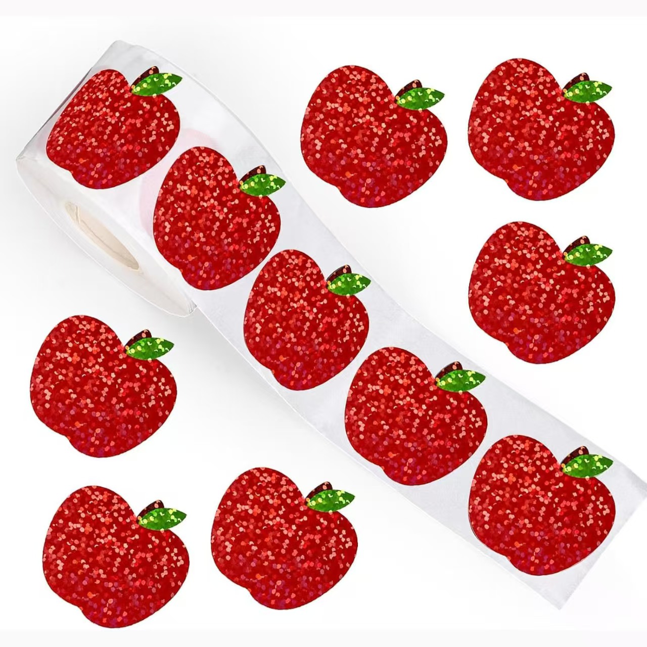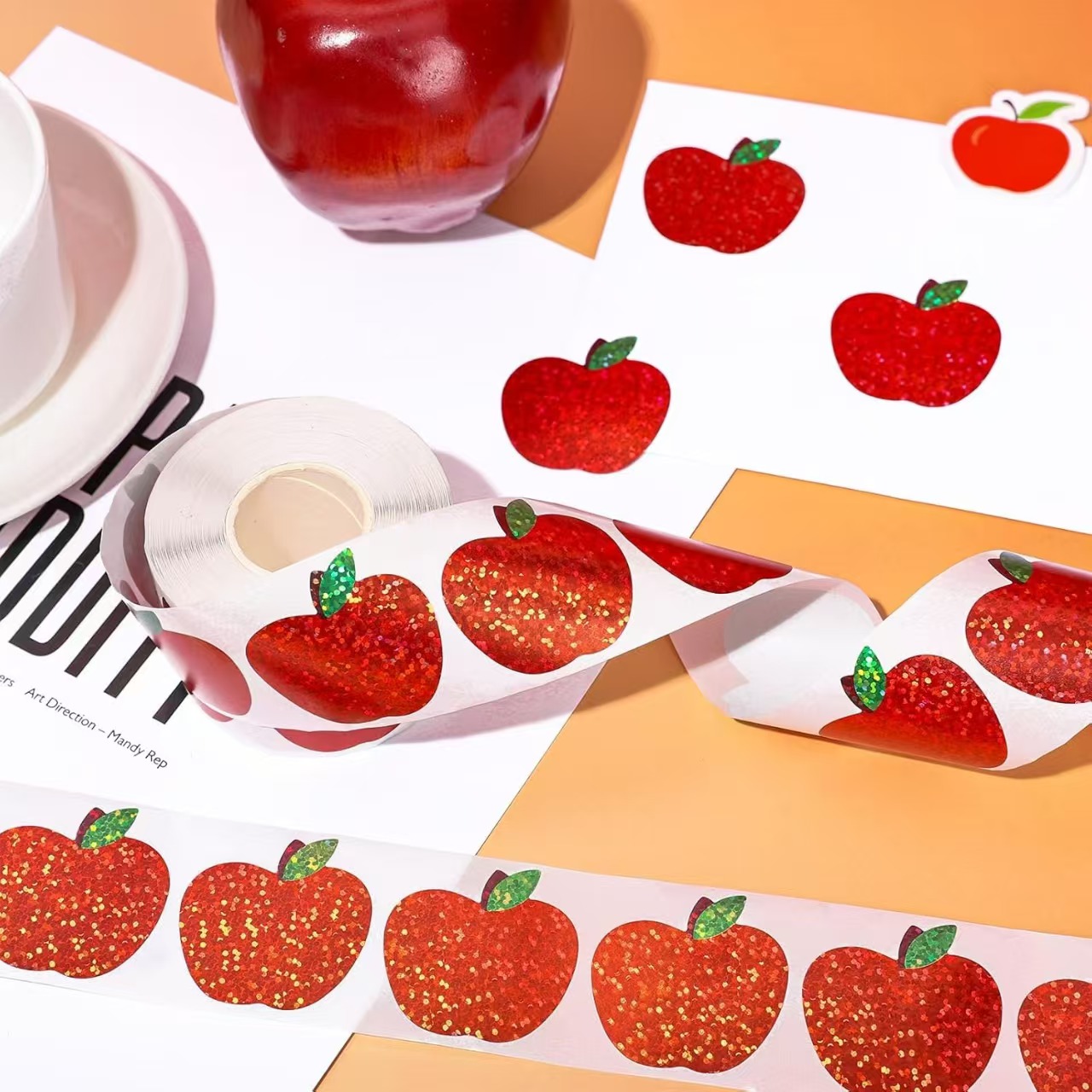 500贴/卷红苹果镭射贴纸儿童奖励小贴画玩具装饰不干胶自粘贴