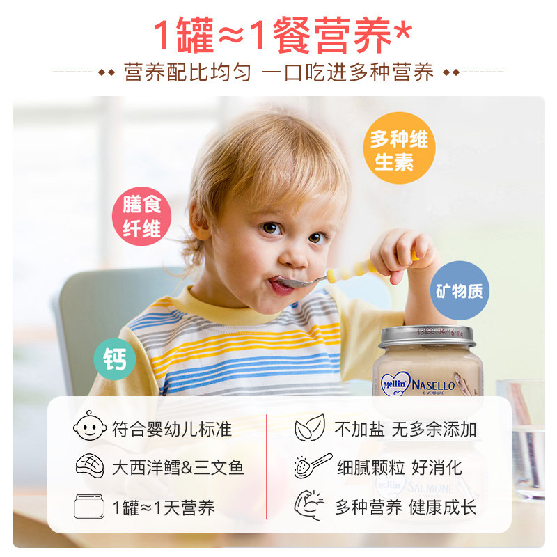 意大利原装美林MELLIN6个月宝宝辅食泥肉泥婴儿食品比目鱼蔬菜泥
