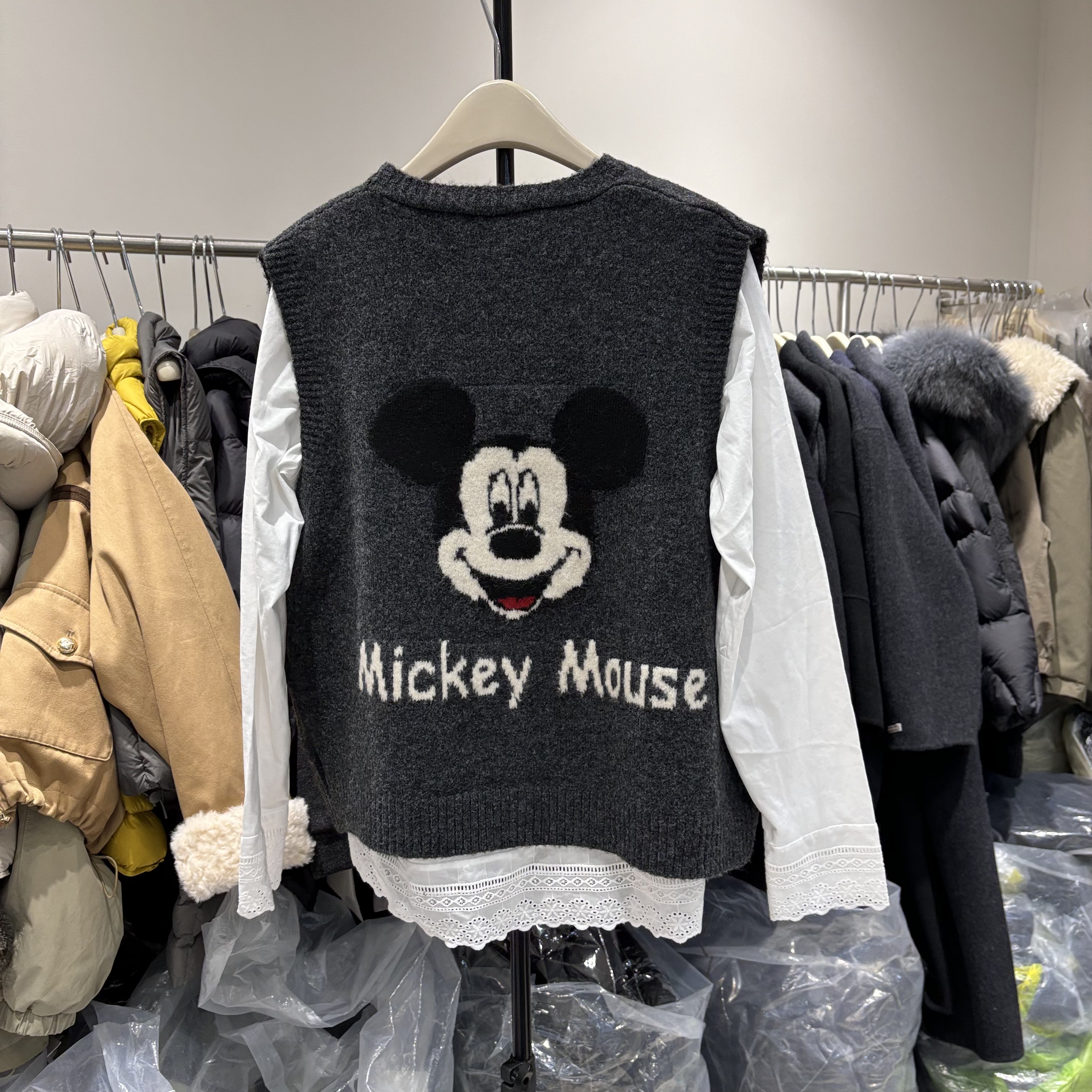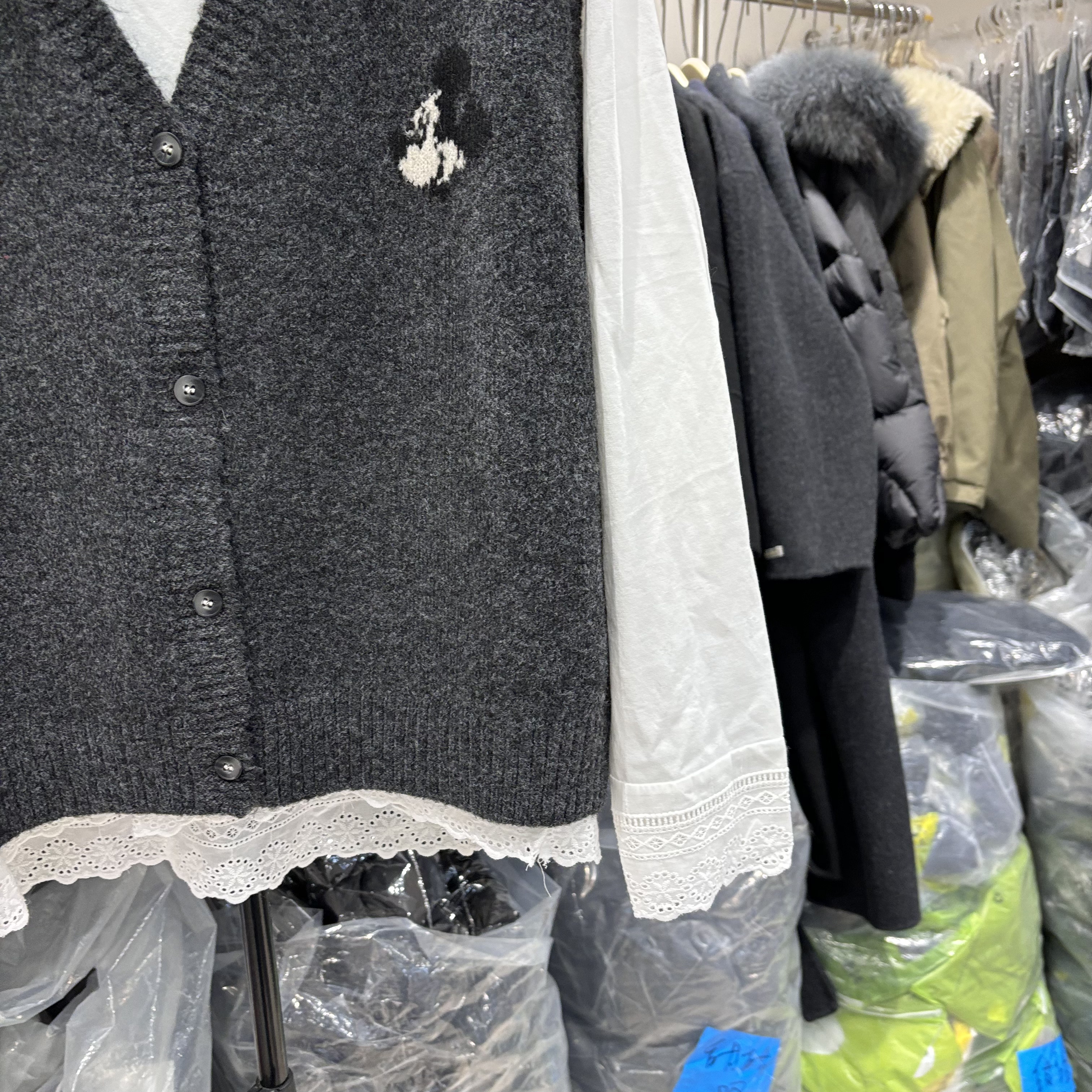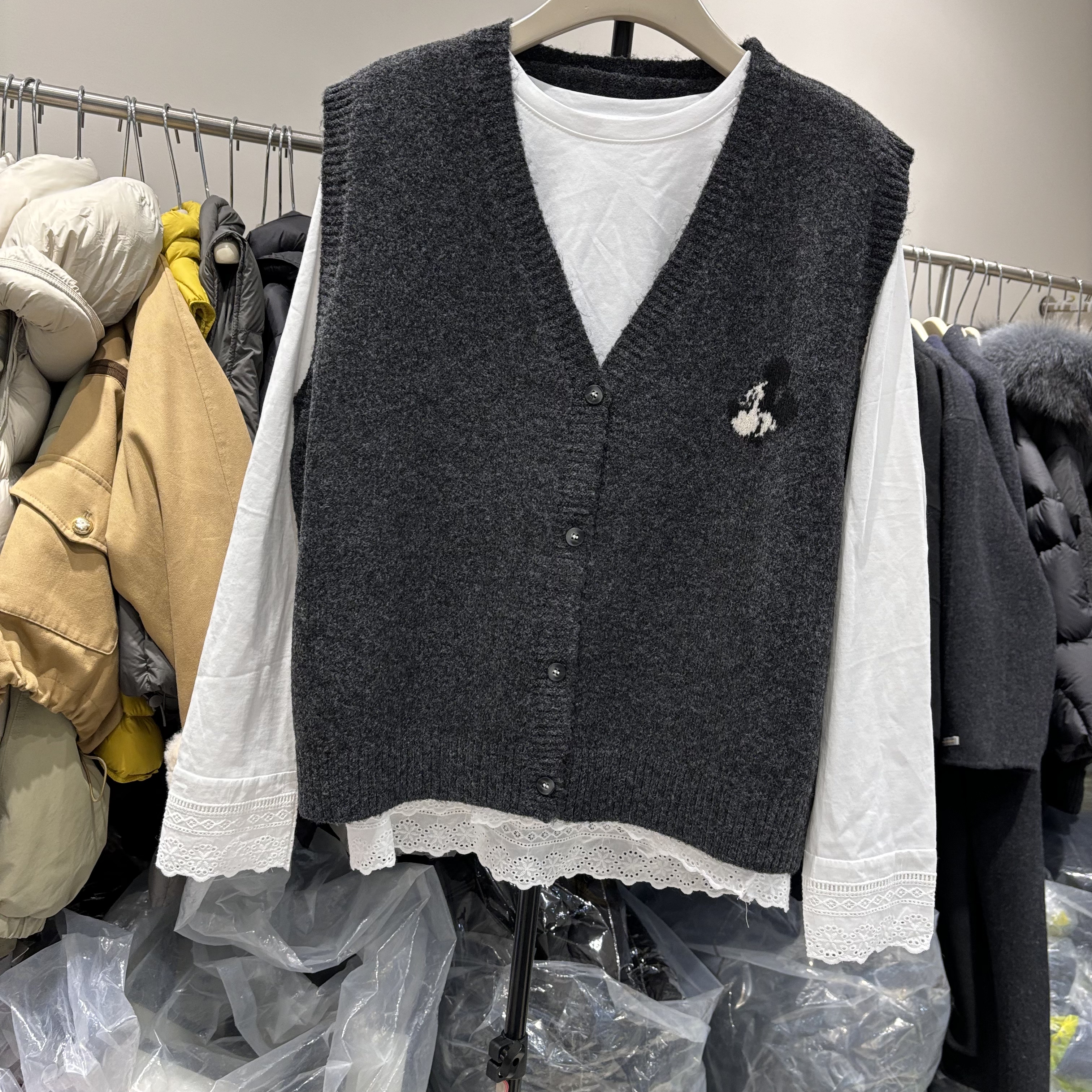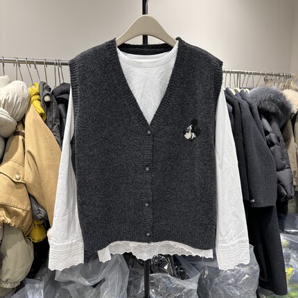 韩版米奇提花针织马甲polo领衬衫两件套2025冬季新款女学院风套装