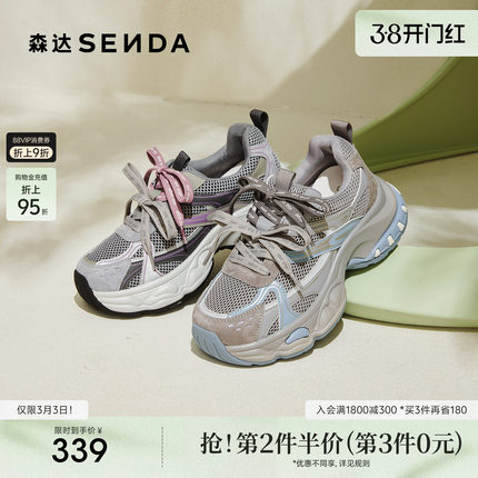 森达超火撞色老爹鞋女款厚底灰色运动鞋26年商场同款休闲鞋XVG01