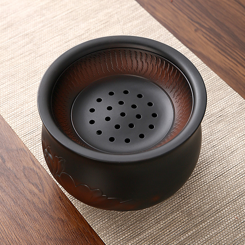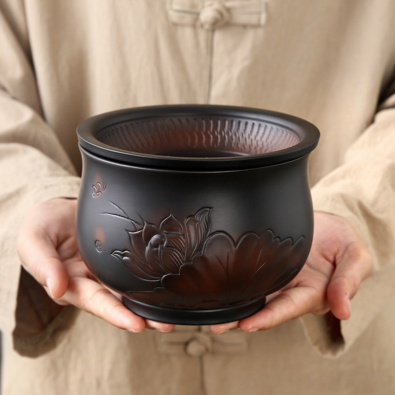 紫陶茶洗茶渣缸功夫茶具配件茶道茶水分离缸家用复古茶渣桶废水桶