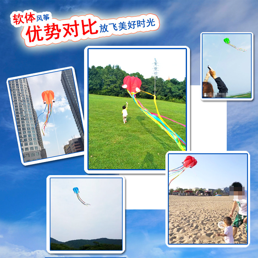 潍坊软体章鱼风筝新款大型高档成人软体八爪鱼微风易飞初学者儿童