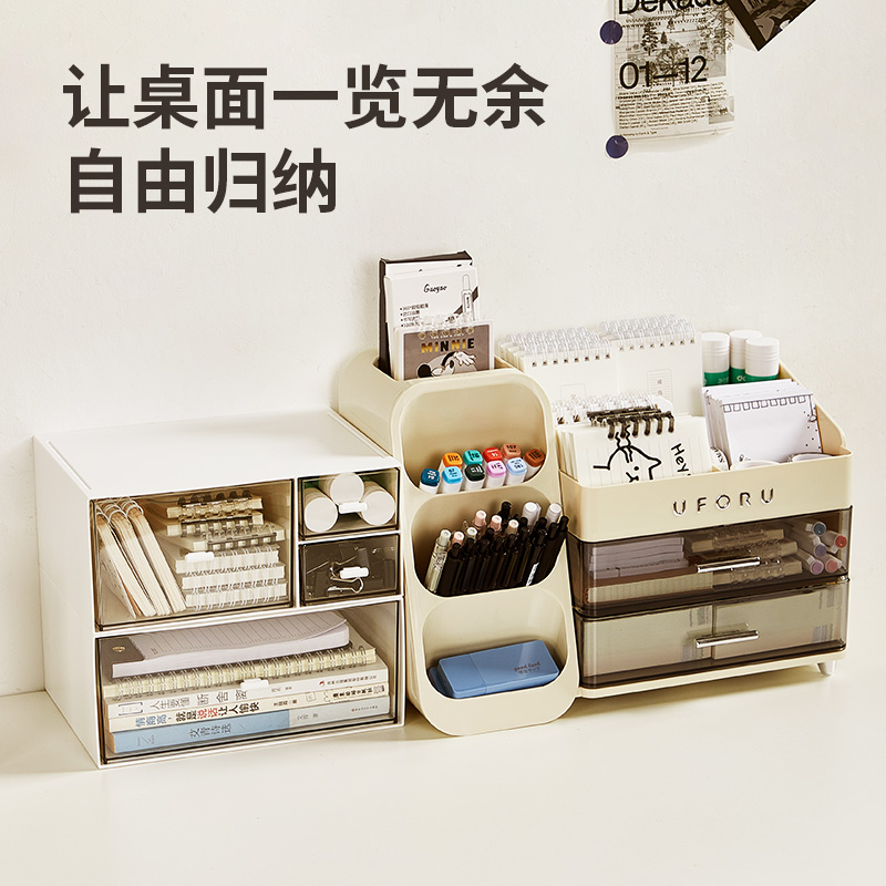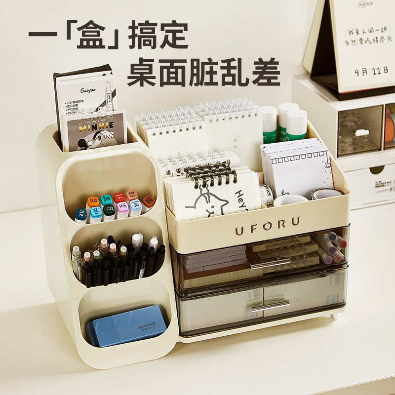 桌面收纳盒抽屉式学生文具笔筒化妆品杂物置物架办公室文件整理盒