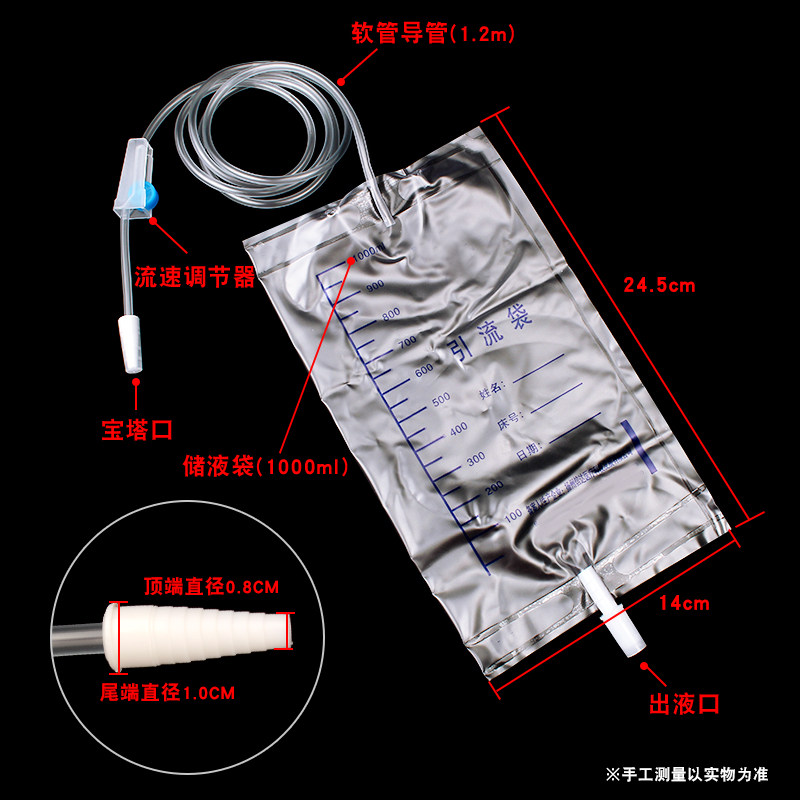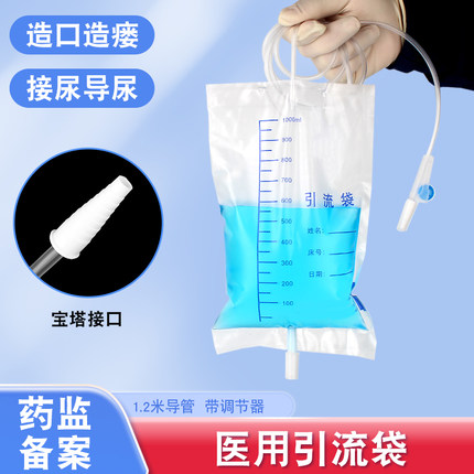 医用一次性引流袋导尿袋胆汁接导尿管宝塔接头接尿袋男女士1000ml