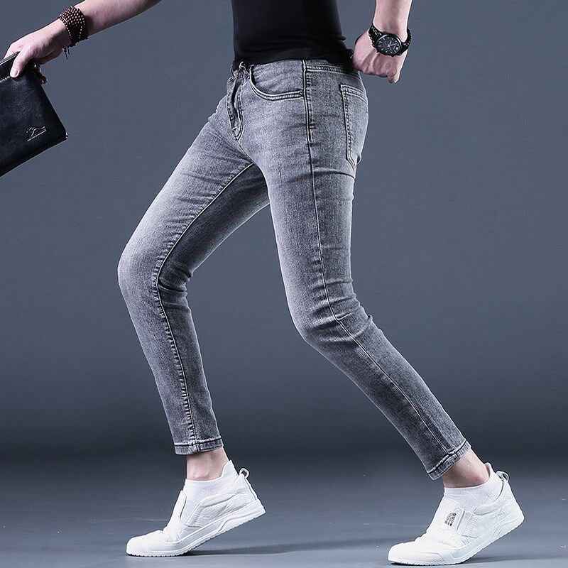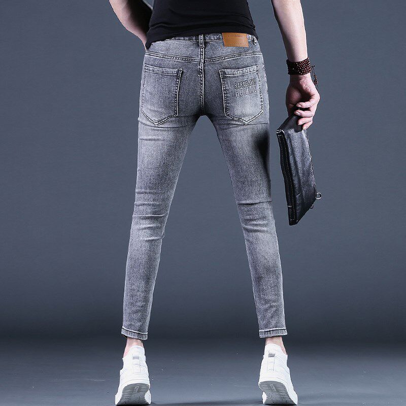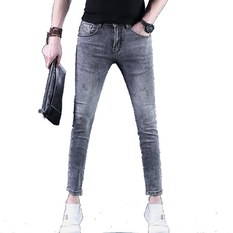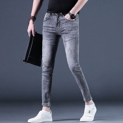 九分裤男烟灰色牛仔裤弹力修身小脚2024夏季男士9分裤潮流男裤薄