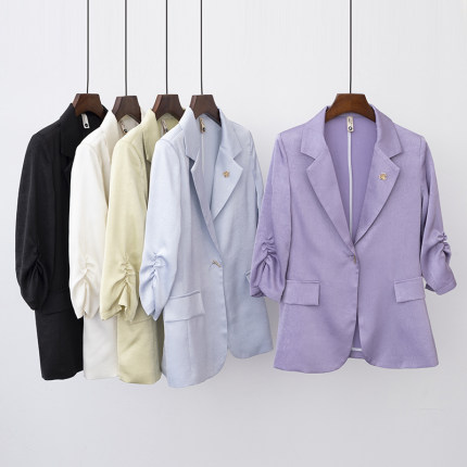 桑蚕丝缎面薄款西装女夏季高级七分袖小个子西服【送胸针】-908款