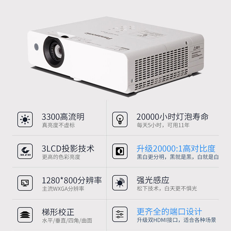 松下PT-WW3101投影仪3300流明高清宽屏办公教学会议无线WiFi