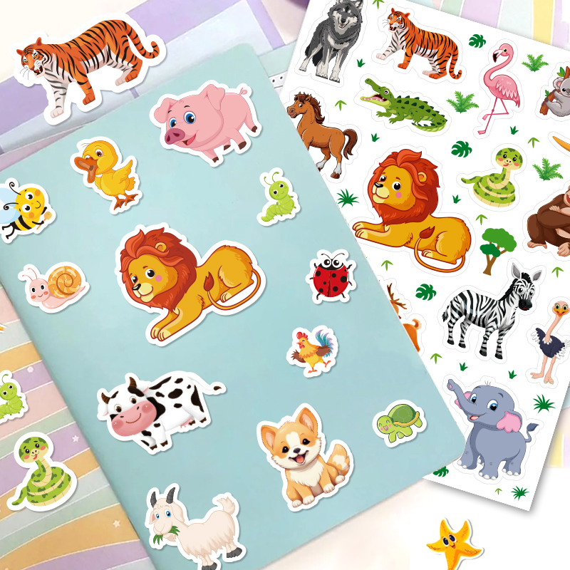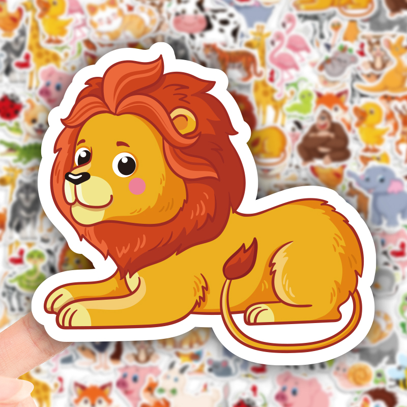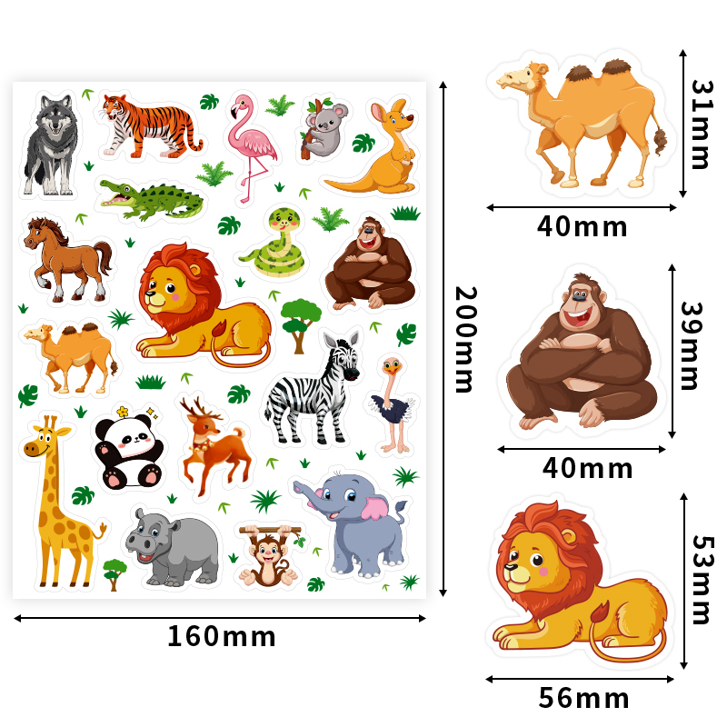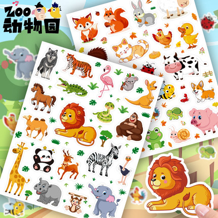 卡通动物园贴纸狮子老虎长颈鹿大象可爱贴画幼儿园儿童趣味益智玩具奖励贴农场小动物diy手帐素材装饰贴贴纸