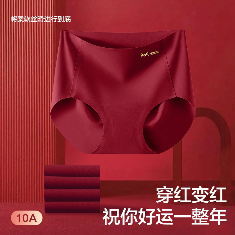 猫人本命年红色内裤女士2025新款抗菌纯棉裆大码无痕少女生三角裤