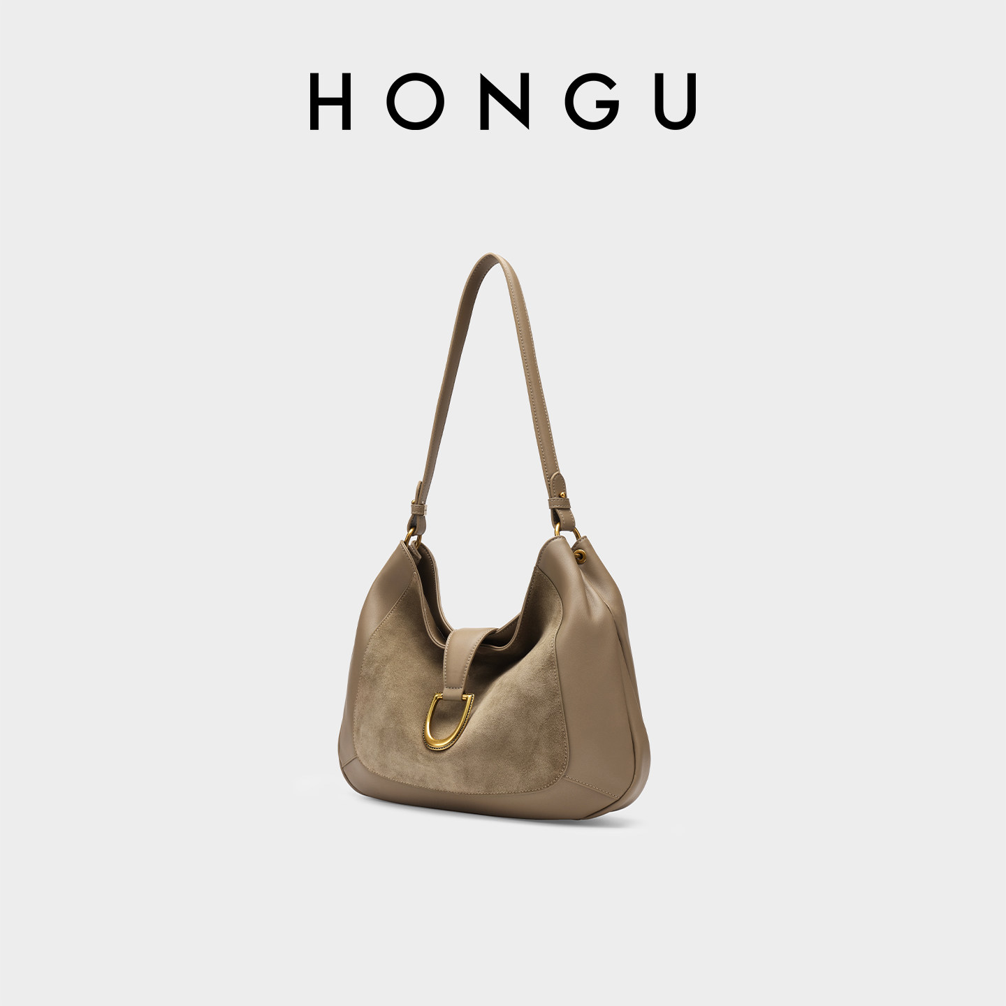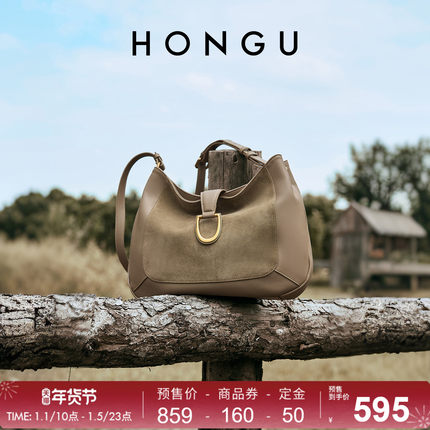 红谷包包2025新款牛皮单肩腋下包麂皮拼接高级感hobo包斜挎女士包