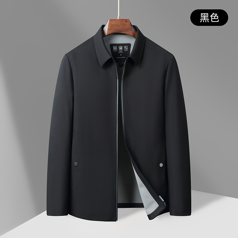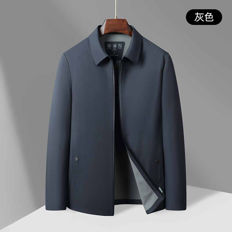送爸爸纯色翻领夹克季新款男装中老年商务休闲简约爸爸装外套
