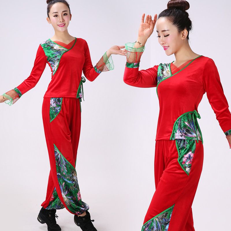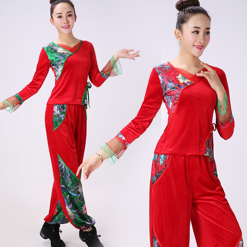 新款广场舞套装灯笼裤民族风跳舞服装金丝绒保暖扇子舞蹈服装成人