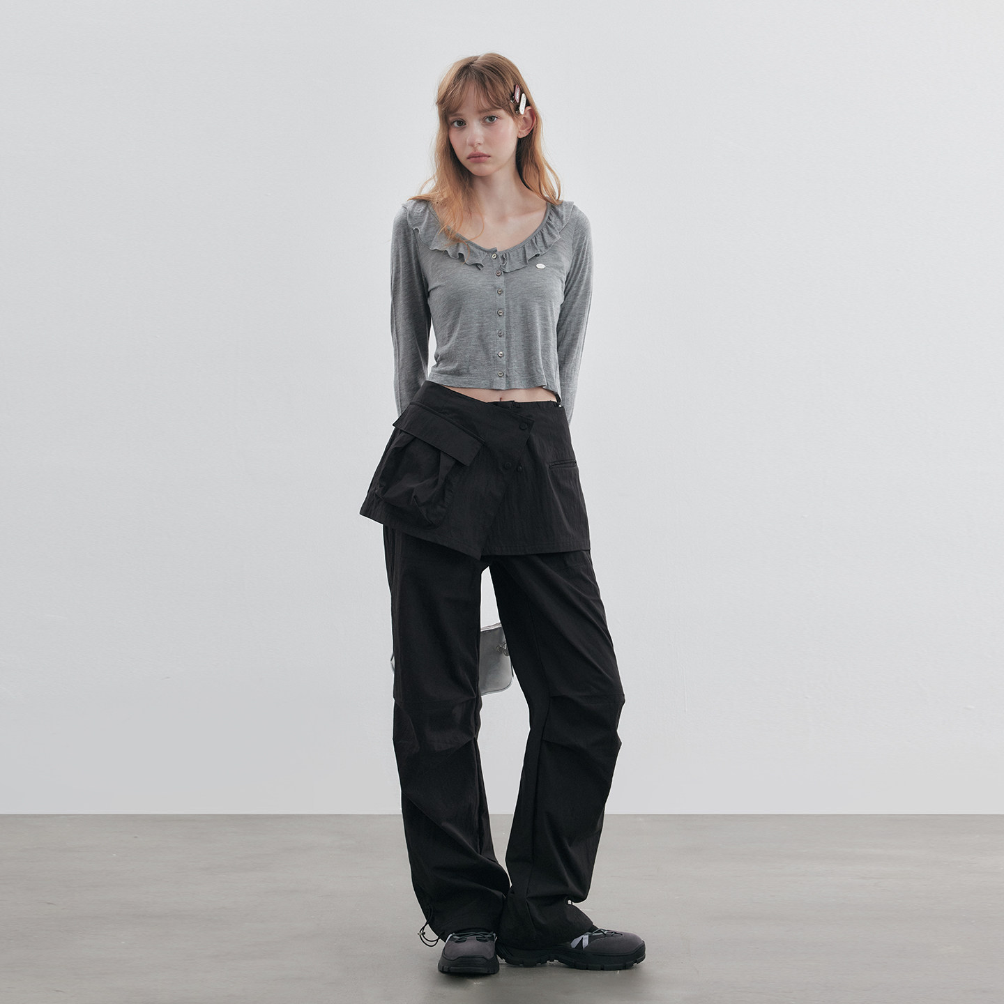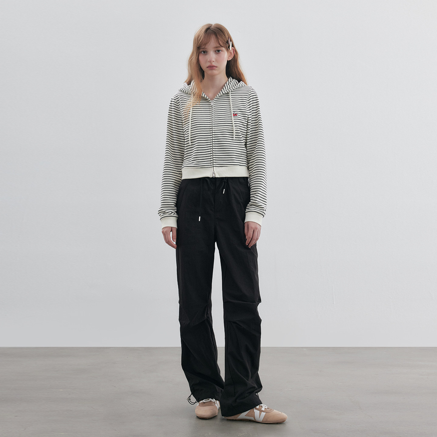 樱桃KIRSH 韩系百搭甜美休闲裤女秋可调节工装长裤纯色大口袋屁帘