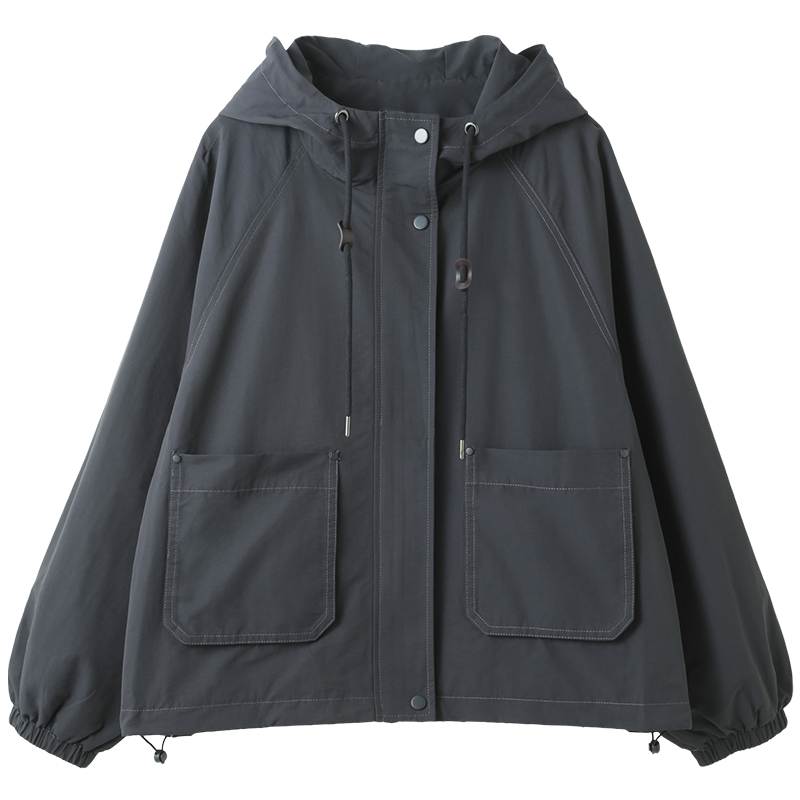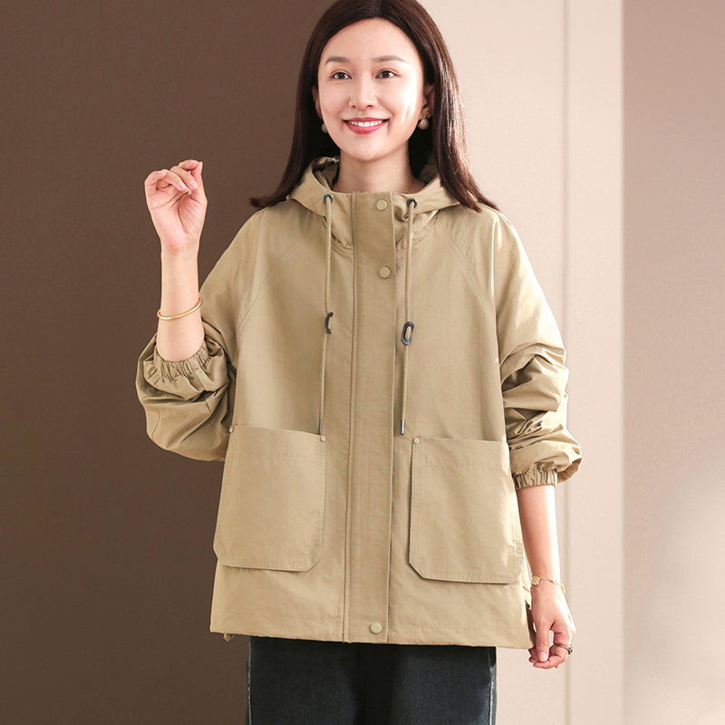 孔雀飞飞2025秋装新款韩版大码遮肉复古纯色连帽风衣外套女中长款