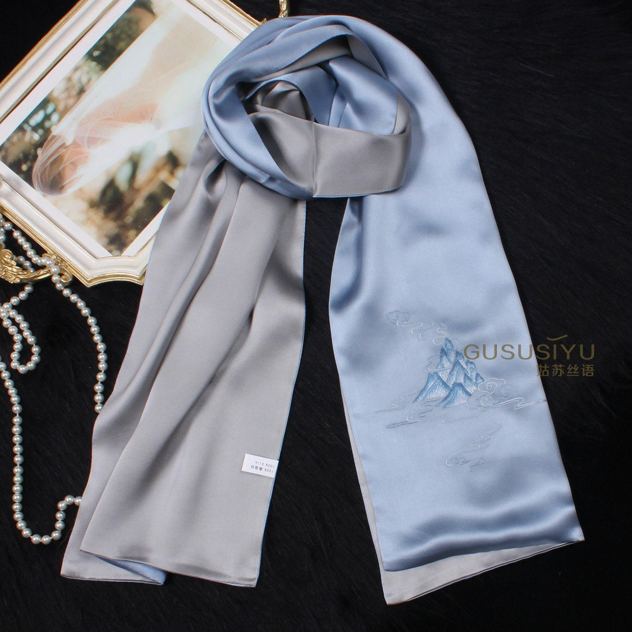 刺绣桑蚕丝长丝巾中年男女士真丝围巾绣花苏州丝绸苏绣特色伴手礼