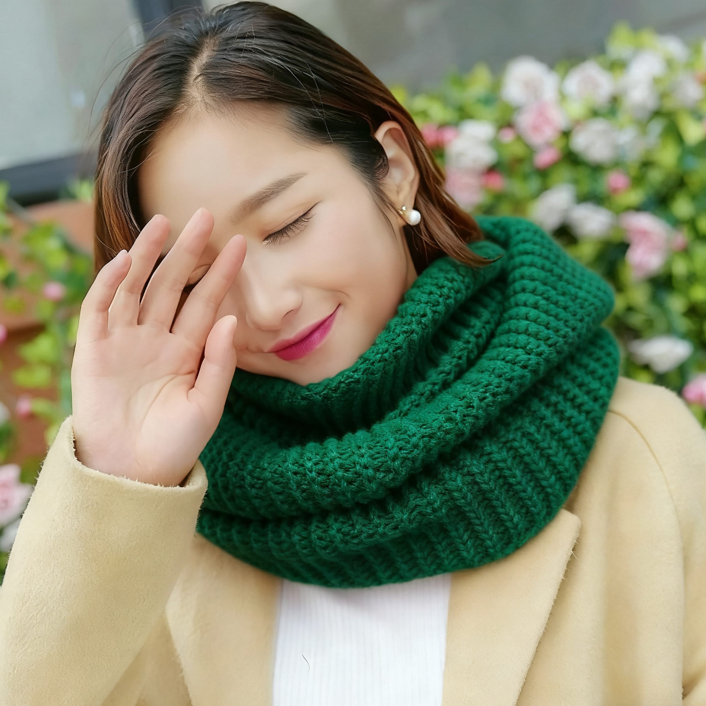围脖女冬季韩版学生百搭原宿秋冬男毛线黑色套头加厚脖套针织围巾