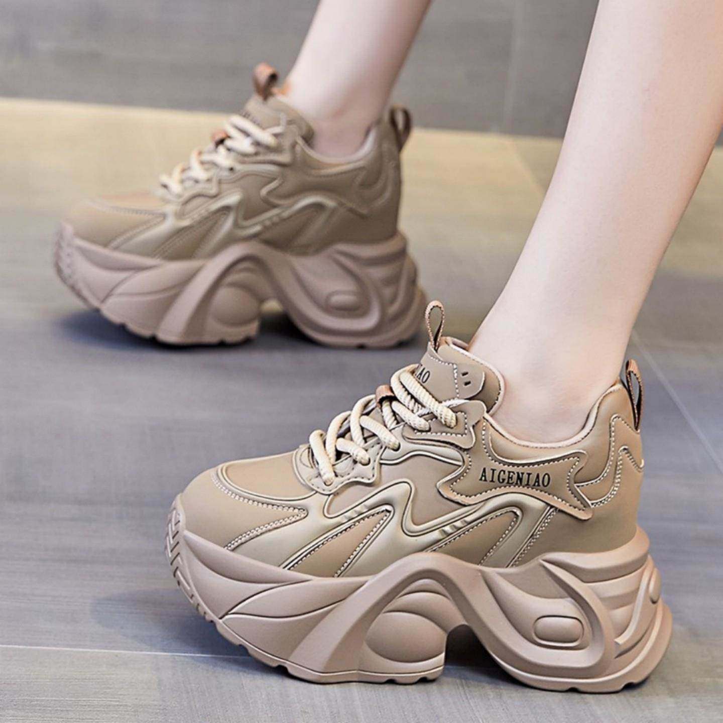港风内增高小个子女鞋老爹鞋2025年新款秋季百搭厚底松糕运动单鞋