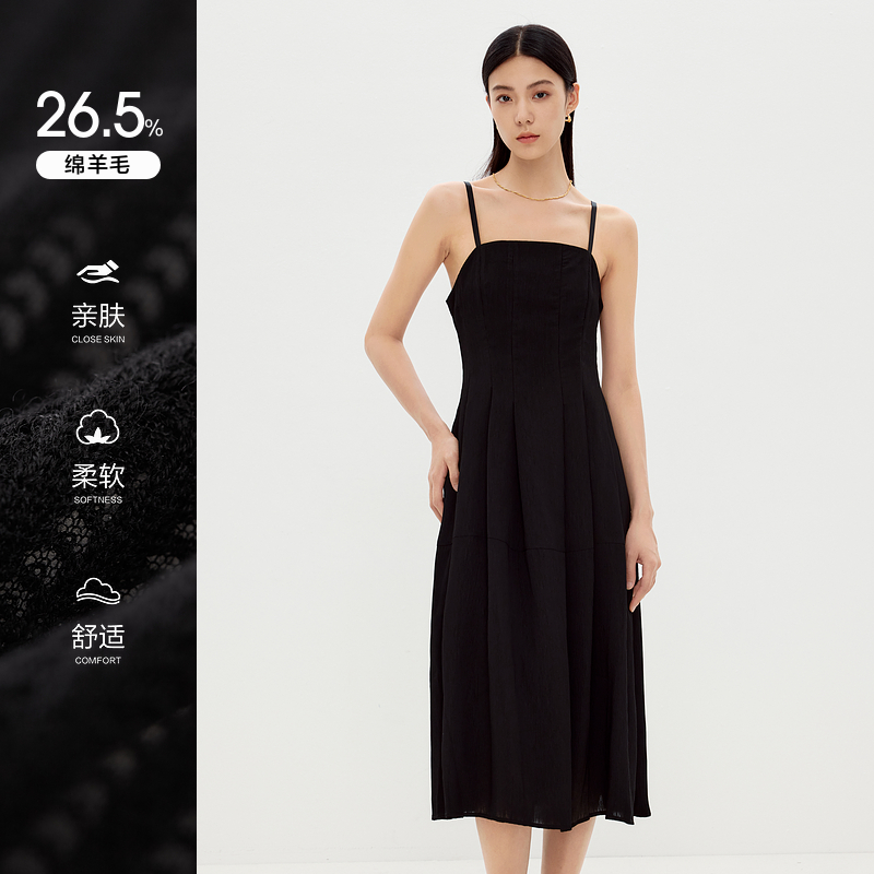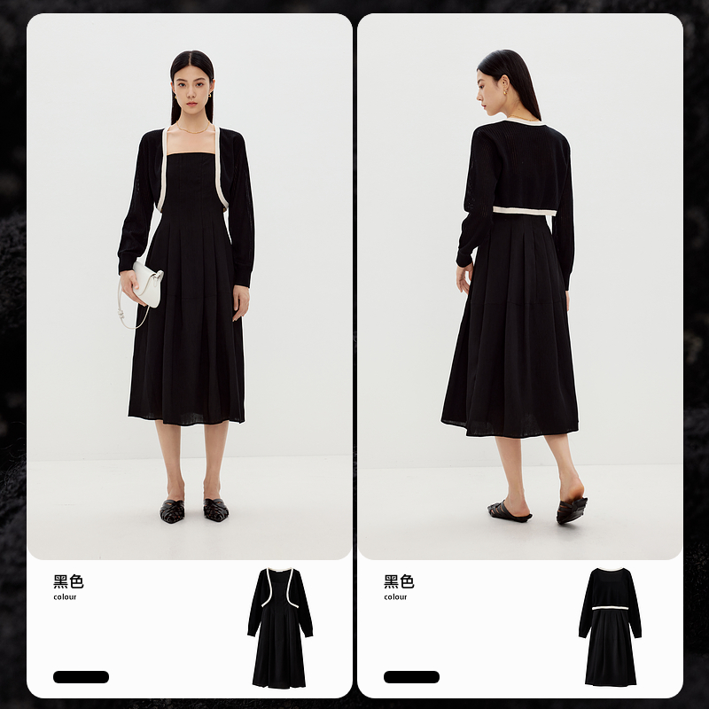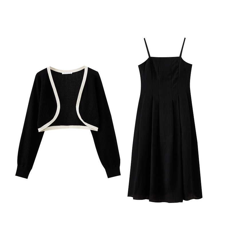 水云间黑色针织吊带连衣裙短款开衫上衣两件套女套装裙子2025秋款