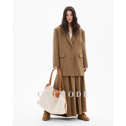 LIONCAT/秋冬新款高级感时尚套装女呢料西装外套百褶半身裙两件套