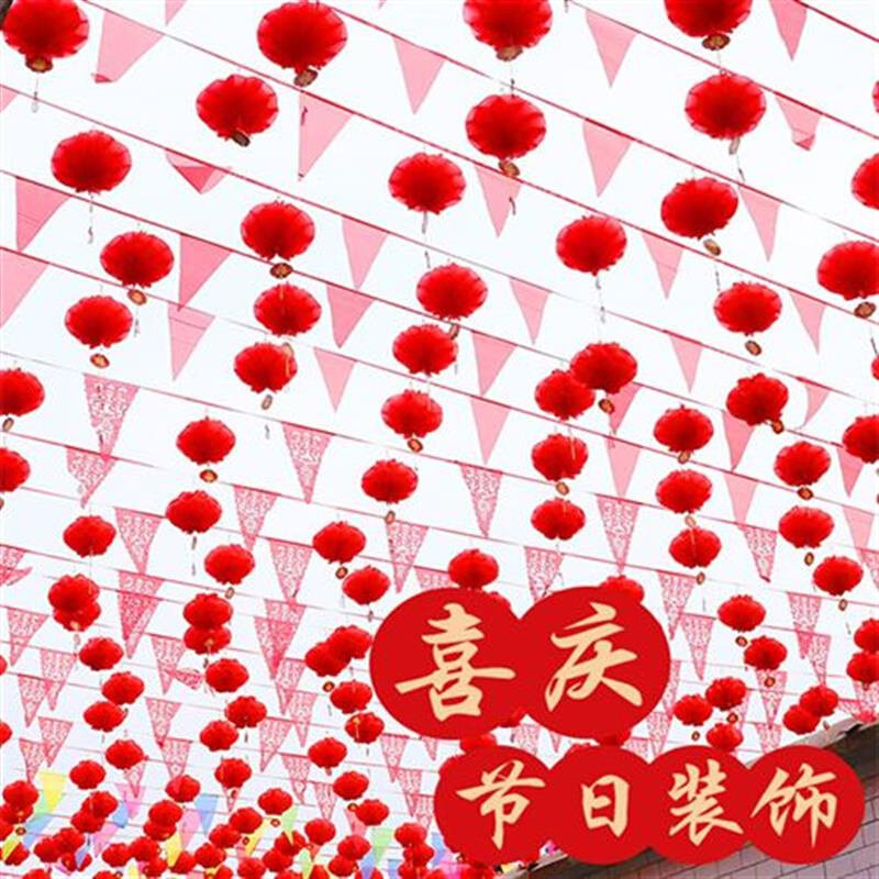 喜字拉花条结e婚彩旗灯笼三角彩期福外20K2笼牛年户字红灯1无纺u.