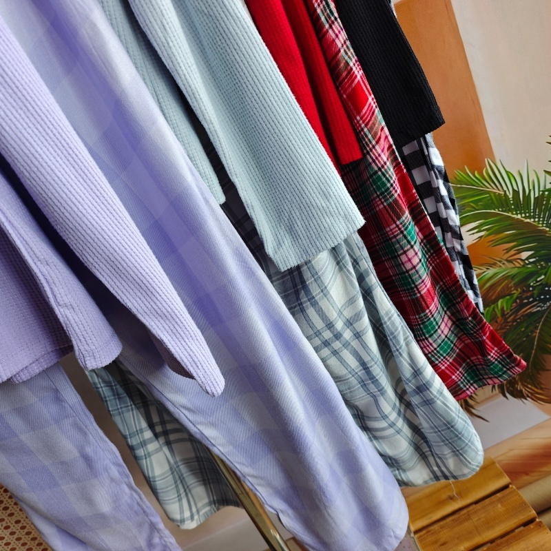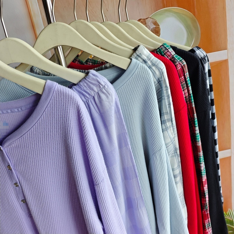 出口美国 经典秋季舒适柔软华夫格休闲长袖长裤睡衣套装家居300斤